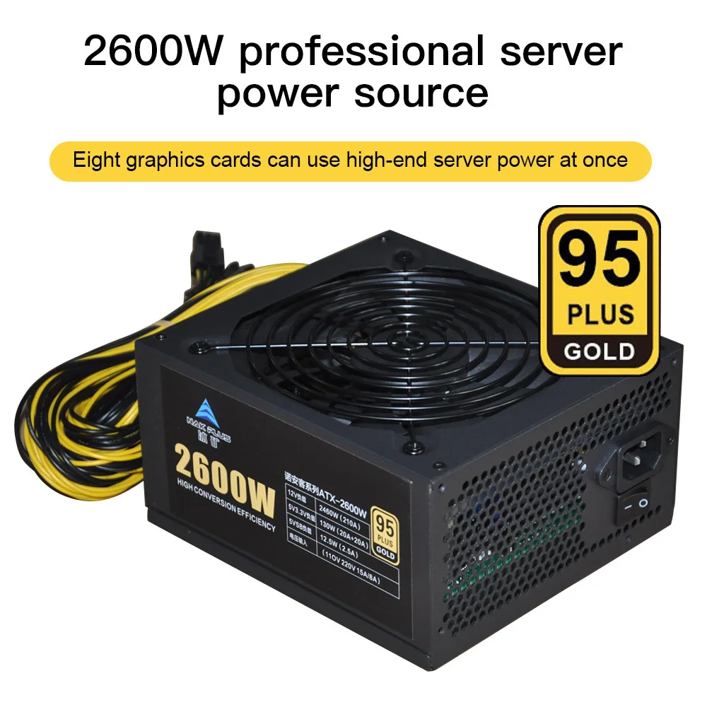 Блок питания для майнинга биткоинов BTC, 2000 Вт, 2400 Вт, 2600 Вт, PSU 160 в-240 В, поддержка форм-фактора ATX, графическая видеокарта 8 ГП, устройство для майнинга биткоинов ETH