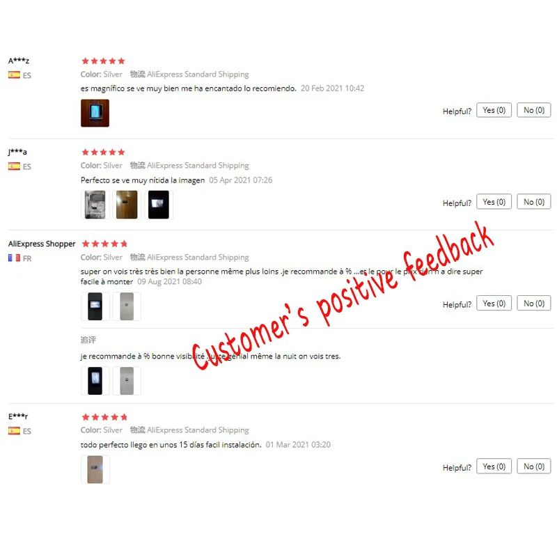 Спецификация:Тип:Камера безопасностиМатериал: цинковый сплавТип: цифровой дверной звонокЖК-дисплей экран: 3,5 дюймовСенсор: 2 мега CMOS сенсорРеальный Угол обзора: 120 градусовФункция: энергосбережение, оповещение о низкой мощностиИсточник питания: 4 шт. AAA батареи (не входят в комплект)Диапазон Отверстия двери: 14-28 ммДиапазон толщины двери: 35-100 ммКлючевое слово: цифровой дверной обзорИсточник питания: 4 шт. AAA батареиДиаметр отверстия двери: 14-28 ммТолщина двери: 35-100 ммРазмер внутреннего устройства: 120x62x20 ммДиаметр (камера на открытом воздухе): 30 ммВес нетто: 197 гПосылка:1 Наружный блок1 х Внутренний блок1 х мешок винтаМеталлический кронштейн-1 шт.Примечание:Возможны отклонения в 1-3 см вследствие измерений вручную.Этот продукт не поддерживает ночное видение.Спасибо за понимание.