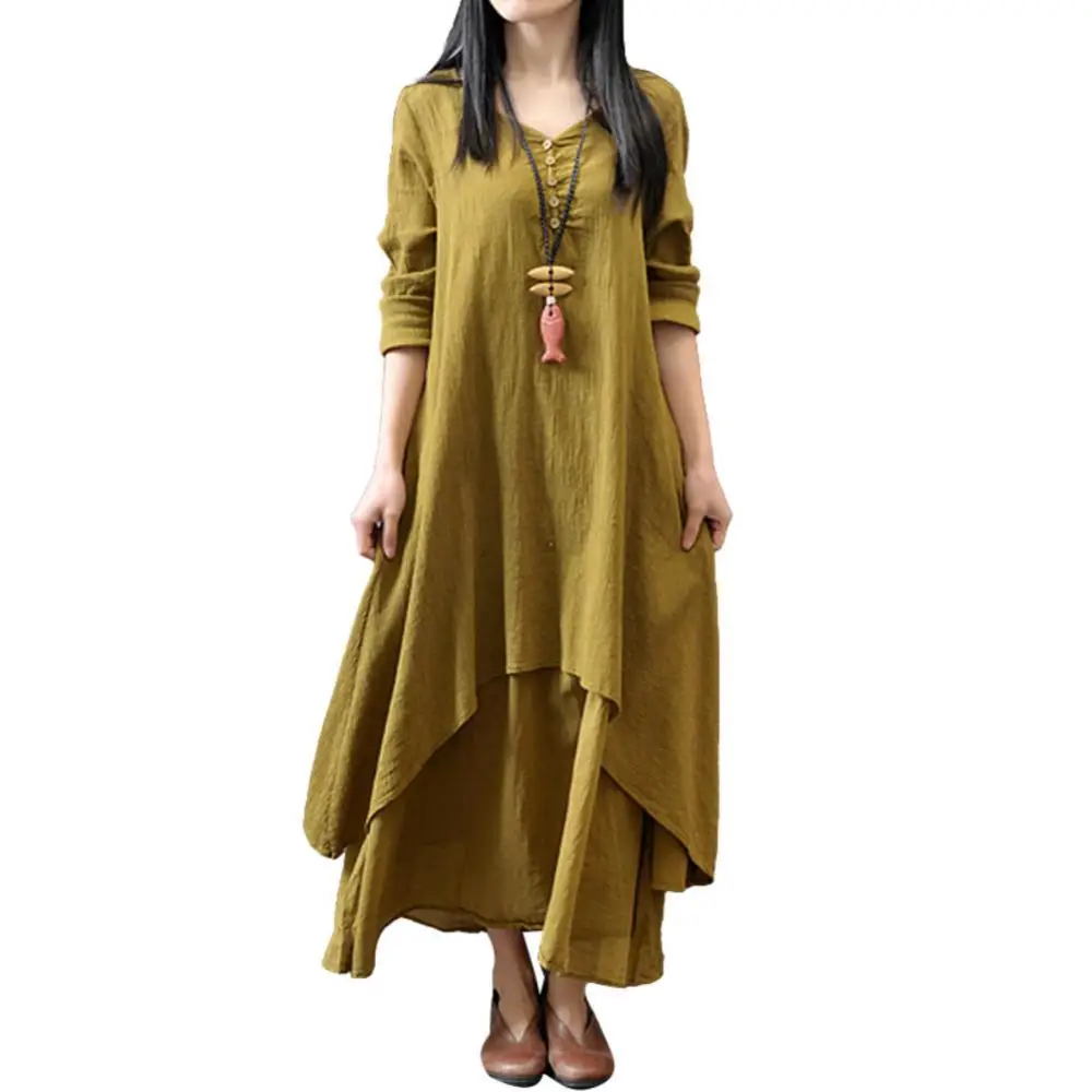50% Лидер продаж, весенне-осеннее повседневное длинное платье из двух предметов, женское однотонное свободное асимметричное длинное платье с длинным рукавом, большие размеры