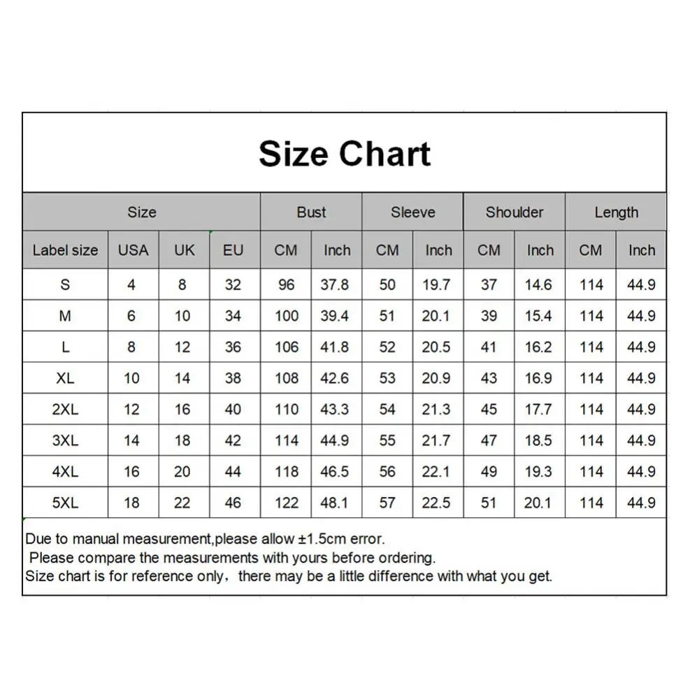 Женское платье-макси большого размера плюс с длинным рукавомХарактеристики:Однотонное Платье макси с многослойным дизайном, простое и повседневное.Свободный стиль и удобно носить.Подходит для большинства повседневных случаев.Тип: ПлатьеПол: женщинСтиль: ПовседневныйМатериал: ленТип размера: ОбычныйДлина рукава: длинный рукавШея: v-образный вырезДлина платья: полная длинаСлучаи: Повседневная жизнь, отдых, вечерние, шоппинг, пляж, офис и т. д.Особенности: однотонный, многослойный, свободный, удобныйИнформация о размере[Наш Размер S] Обхват груди: 96 см/37,80 дюйма, рукав: 50 см/19,69 дюйма, ширина плеч: 37 см/14,57 дюйма, длина: 114 см/44,88 дюйма (прибл.)[Наш Размер M] Обхват груди: 100 см/39,37 дюйма, рукав: 51 см/20,08 дюйма, ширина плеч: 39 см/15,35 дюйма, длина: 114 см/44,88 дюйма (прибл.)[Наш Размер L] Обхват груди: 106 см/41,73 дюйма, рукав: 52 см/20,47 дюйма, ширина плеч: 41 см/16,14 дюйма, длина: 114 см/44,88 дюйма (прибл.)[Наш Размер XL] Обхват груди: 108 см/42,52 дюйма, рукав: 53 см/20,87 дюйма, ширина плеч: 43 см/16,93 дюйма, длина: 114 см/44,88 дюйма (прибл.)[Наш Размер 2XL] Обхват груди: 110 см/43,31 дюйма, рукав: 54 см/21,26 дюйма, ширина плеч: 45 см/17,72 дюйма, длина: 114 см/44,88 дюйма (прибл.)[Наш Размер 3XL] Обхват груди: 114 см/44,88 дюйма, рукав: 55 см/21,65 дюйма, ширина плеч: 47 см/18,50 дюйма, длина: 114 см/44,88 дюйма (прибл.)[Наш Размер 4XL] Обхват груди: 118 см/46,46 дюйма, рукав: 55 см/21,65 дюйма, ширина плеч: 49 см/19,29 дюйма, длина: 114 см/44,88 дюйма (прибл.)[Наш Размер 5XL] Обхват груди: 122 см/48,03 дюйма, рукав: 56 см/22,05 дюйма, ширина плеч: 51 см/20,08 дюйма, длина: 114 см/44,88 дюйма (прибл.)Примечания:Пожалуйста, обратитесь к нашей таблице размеров и выберите правильный размер.Благодаря светильник и экрана Цвет Товара может быть s светильник ly отличается из-за характеристик монитора компьютера.Посылка включает в себя:1 платье