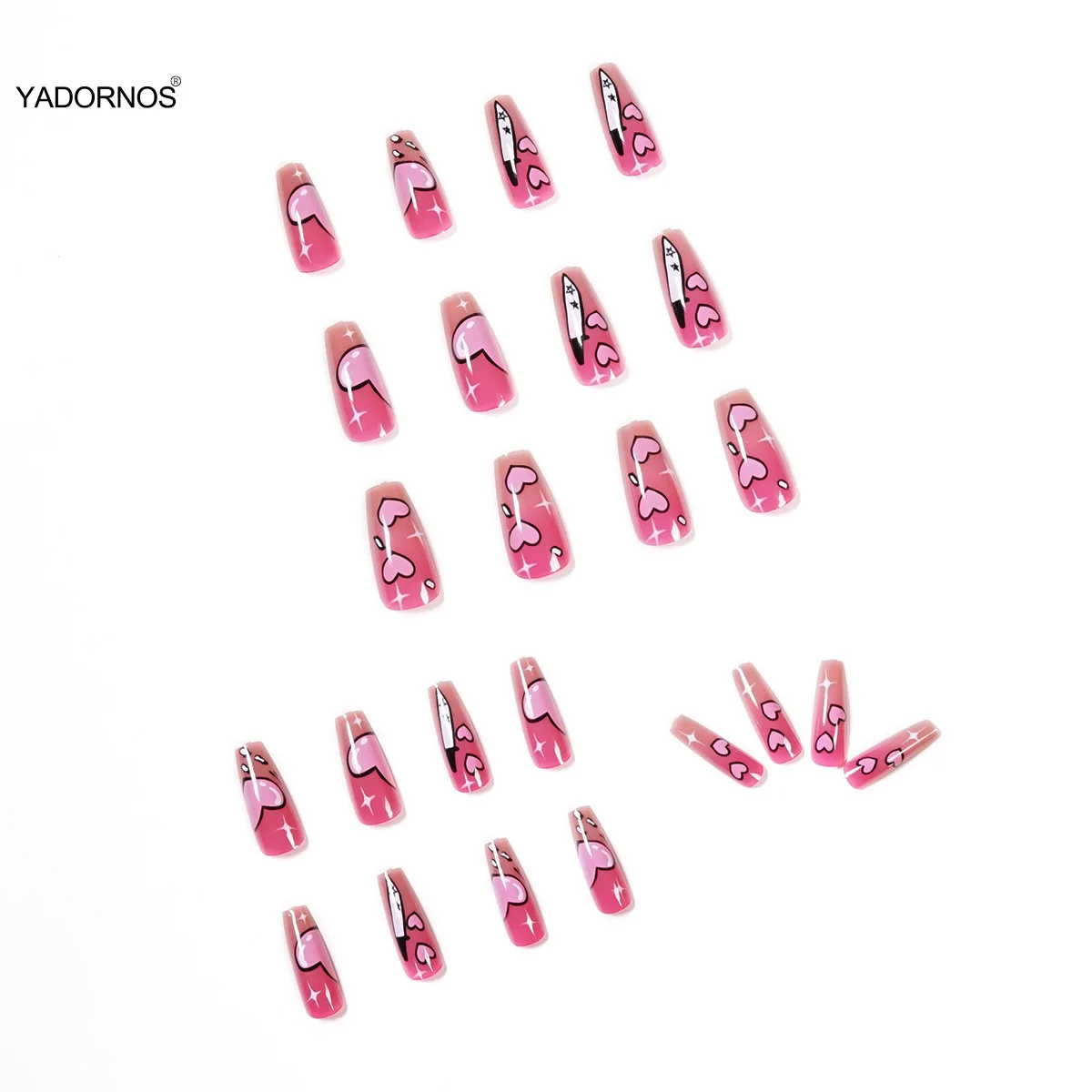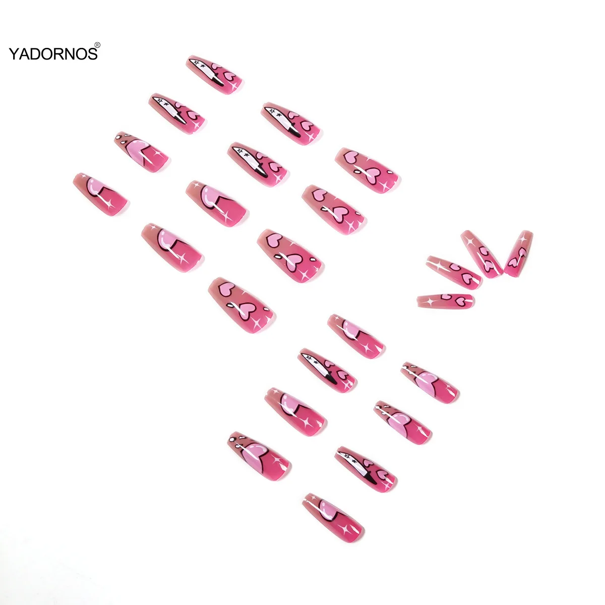 Накладные ногти с полным покрытием, заостренные ногти в комиксном стиле, милые ногти для дизайна ногтей, Готовые Ногти, 24 шт. клеевого типа, лучший подарок