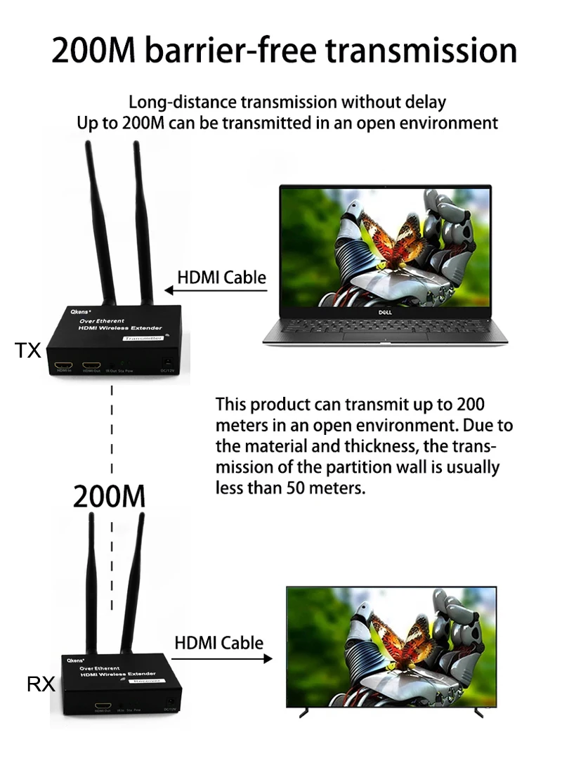 DVD/ноутбук ПК/HD камера/смартфон/ТВ коробка и т. Д. ; RX может работать для HDMI-TV/проектор/дисплеи