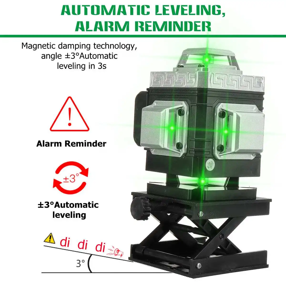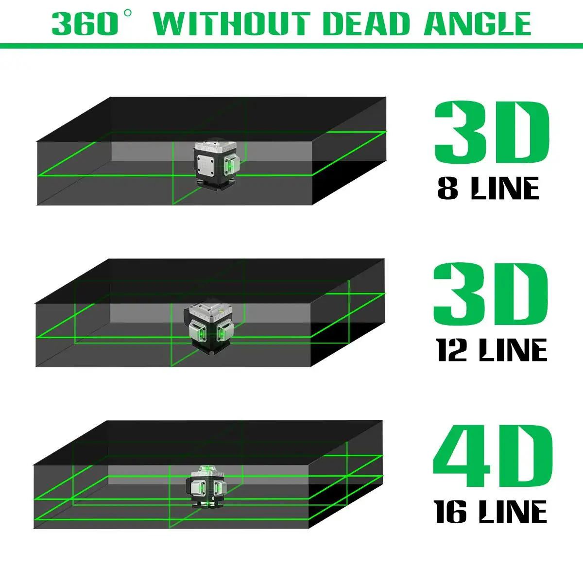 16 линий зеленый свет 4D автоматический самонивелирующийся лазерный уровень 360 горизонтальная регулировка сверхмощный зеленый лазер с цифровой батареей
