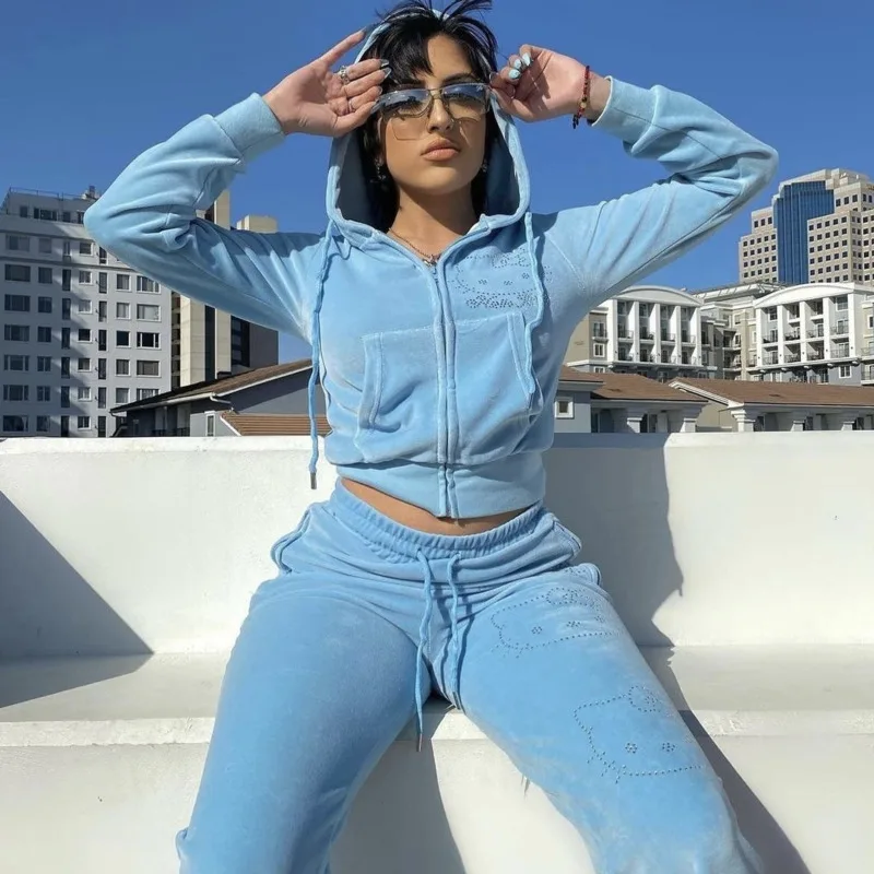 Женский велюровый спортивный костюм Y2k, зимний модный костюм с капюшоном и длинными рукавами, бархатный свитшот на молнии и штаны для женщин, стиль Instagram, 2022
