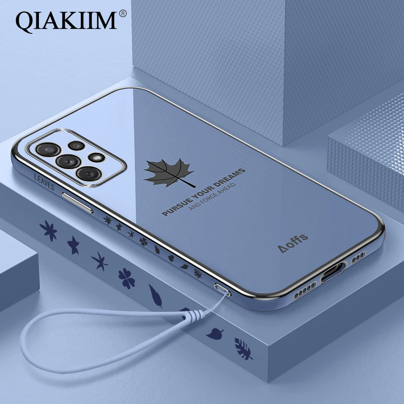 Роскошный силиконовый чехол с Кленовым листом и квадратным покрытием для телефона Samsung Galaxy A72, A52, A32, A21S, A10S, A20S, A51, тонкий мягкий чехол с ремешком