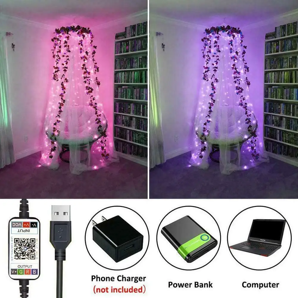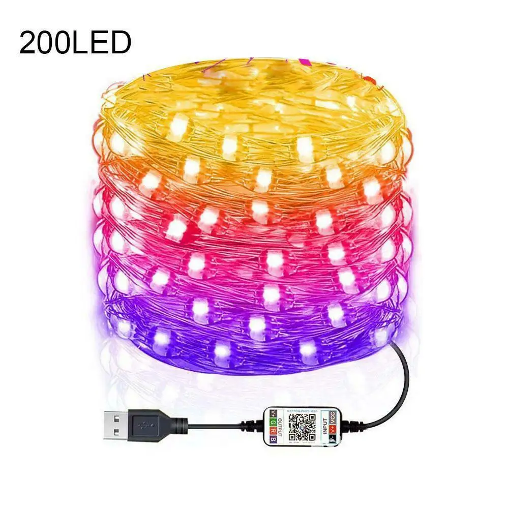 Гирлянда светодиодная медная с управлением через приложение и подде...