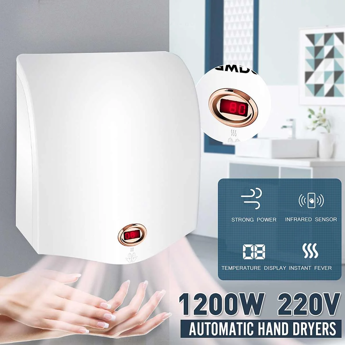 Сушилка для рук Warmtoo с большим ветровым двигателем, 1200 Вт, с инфракрасным датчиком и индикатором температуры, 220 В