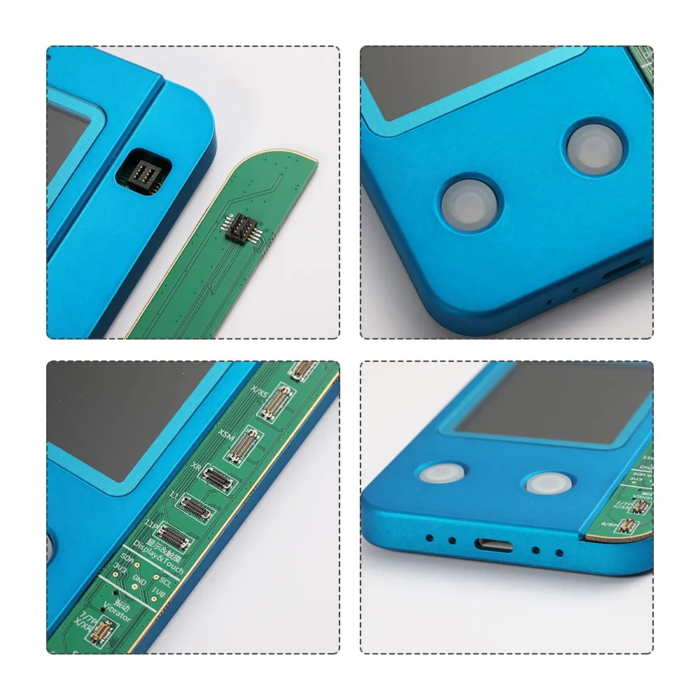 ● Датчик окружающей среды: iPhone 7, 7 Plus, 8, 8 Plus, X, XR, XS, XS Max/11/11 pro/11pro max ● истинный тон: iPhone 8,8 Plus, X, XR, XS, XS Max/11/11 pro/11pro max ● вибратор: iPhone 7, 7 Plus, 8, 8 Plus, X, XR, XS, XS Max/11/11 pro/11pro max ●Logic Chip en Baseband Chip: iPhone 6, 6 Plus, 7, 7 Plus, 8, 8 Plus, X, XR, XS, XS Max/11/11 pro/11pro max Kenmerken: ● Compact chip programmeur met testen plaat biedt offline en online operaties voor de reparatie van Omgevingslicht сенсор, вибратор, Чип True Tone en logic/baseband оригинального монтажа u hebben, behalve aftermarket vervanging scherm. ● Gebruiksvriendelijk Werking zonder Handmatige ● ingebouwde twee plaat verbinding sockets voor functie plaat ● Поддержка китайских en Engels
