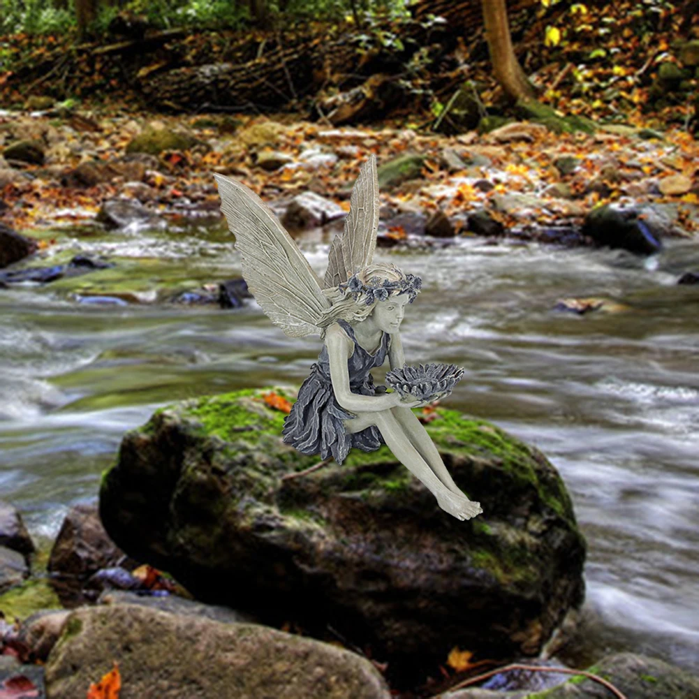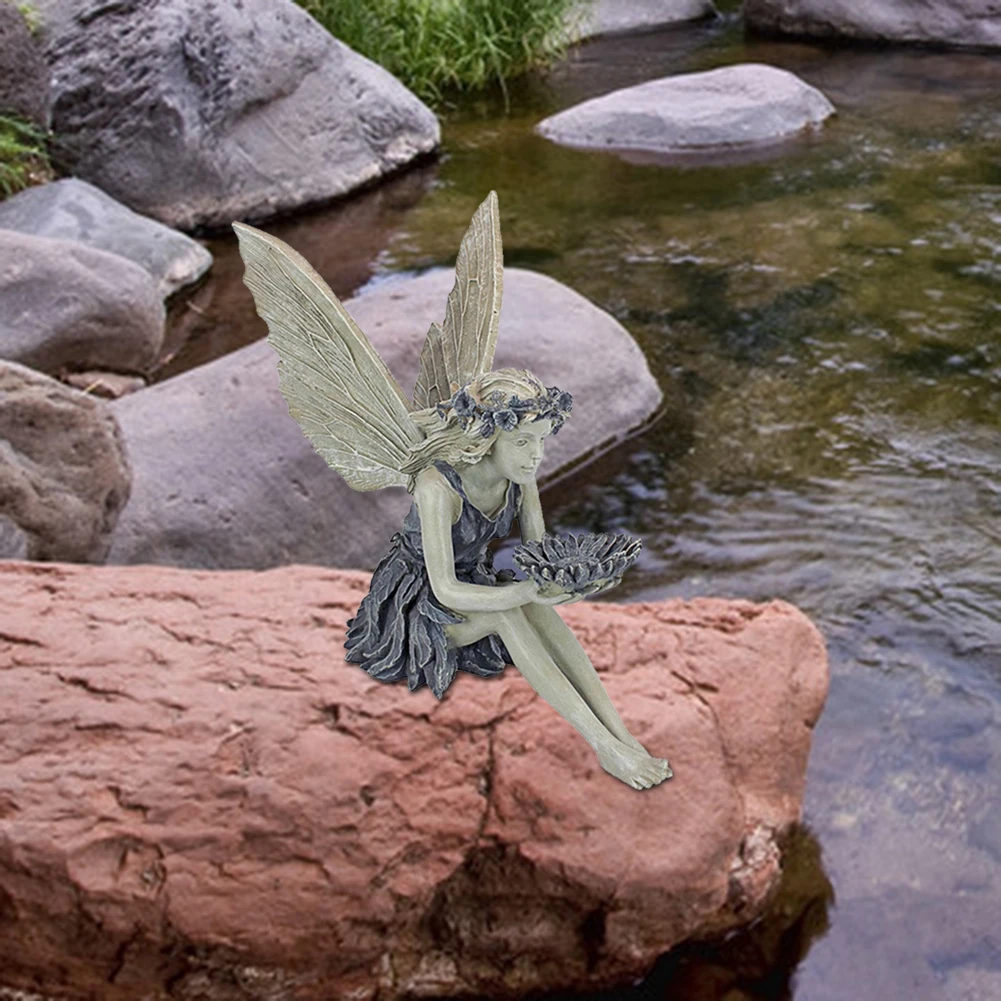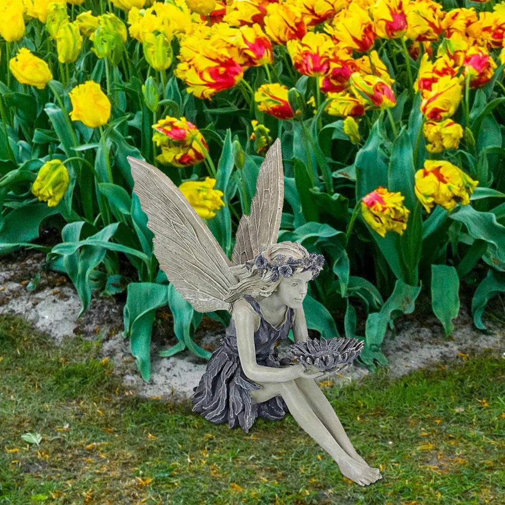 Статуя Феи подсолнуха, красивый ангел, скульптура, Реалистичная фигурка, орнамент для сада, полимерное ремесло, ландшафтный двор