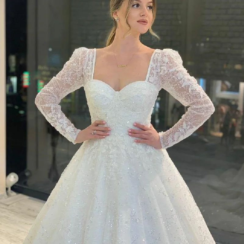 Свадебное платье с круглым вырезом и длинным рукавом, бальное плать...