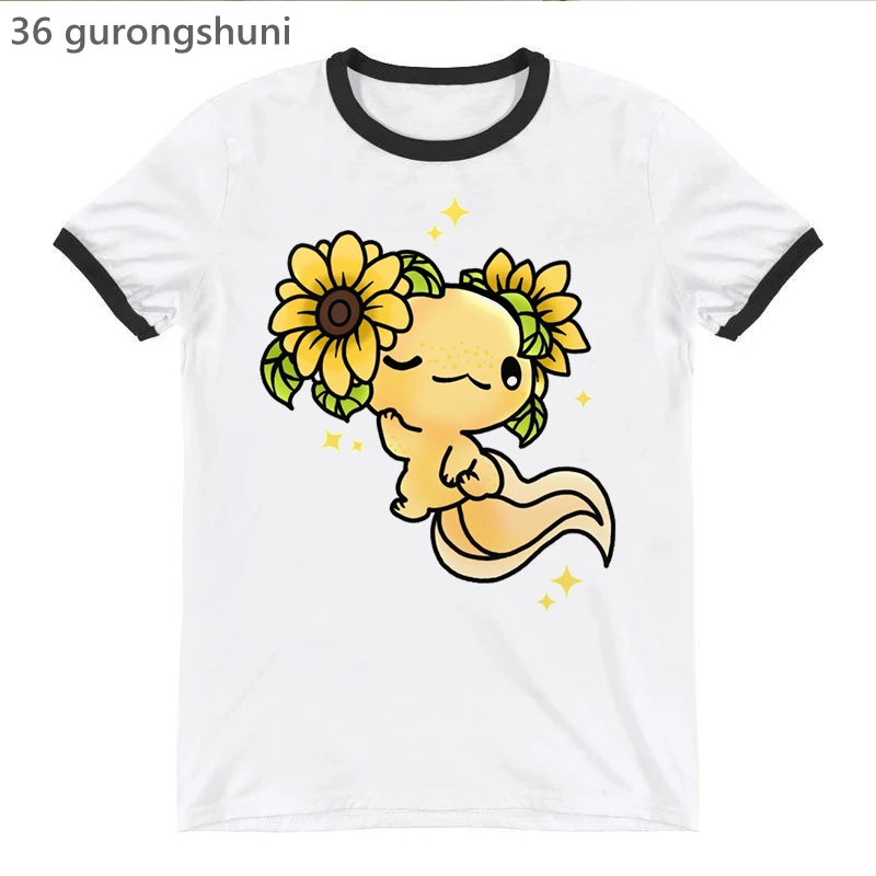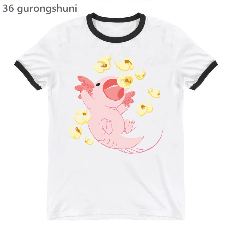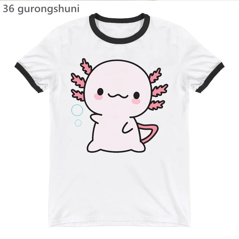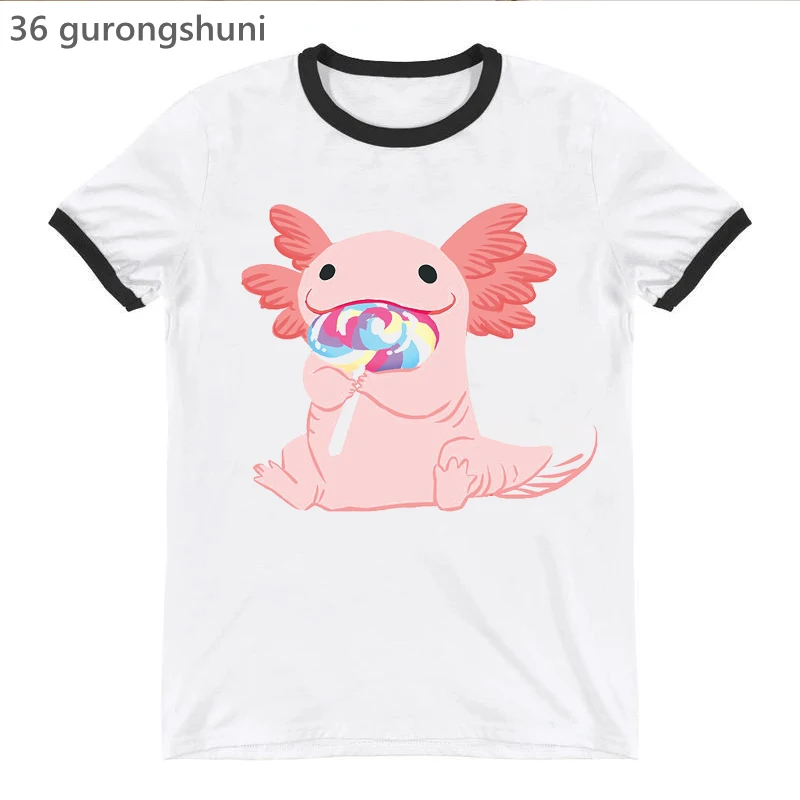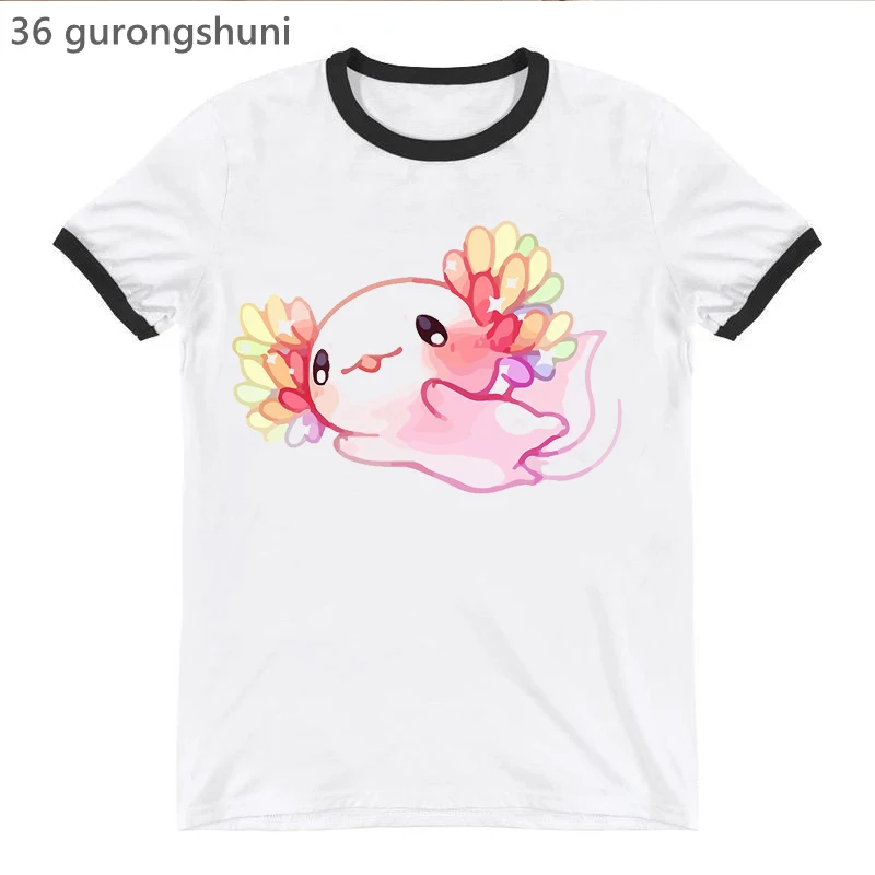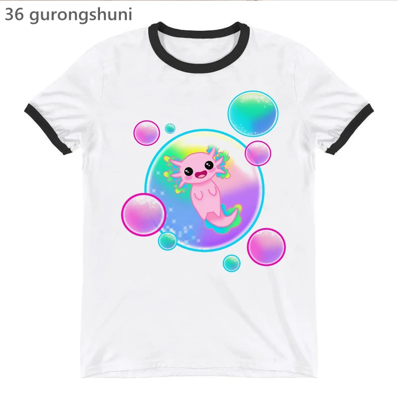 Футболка женская с принтом Rainbow Kawaii Axolotl, модная смешная рубашка, Белый Топ, на лето