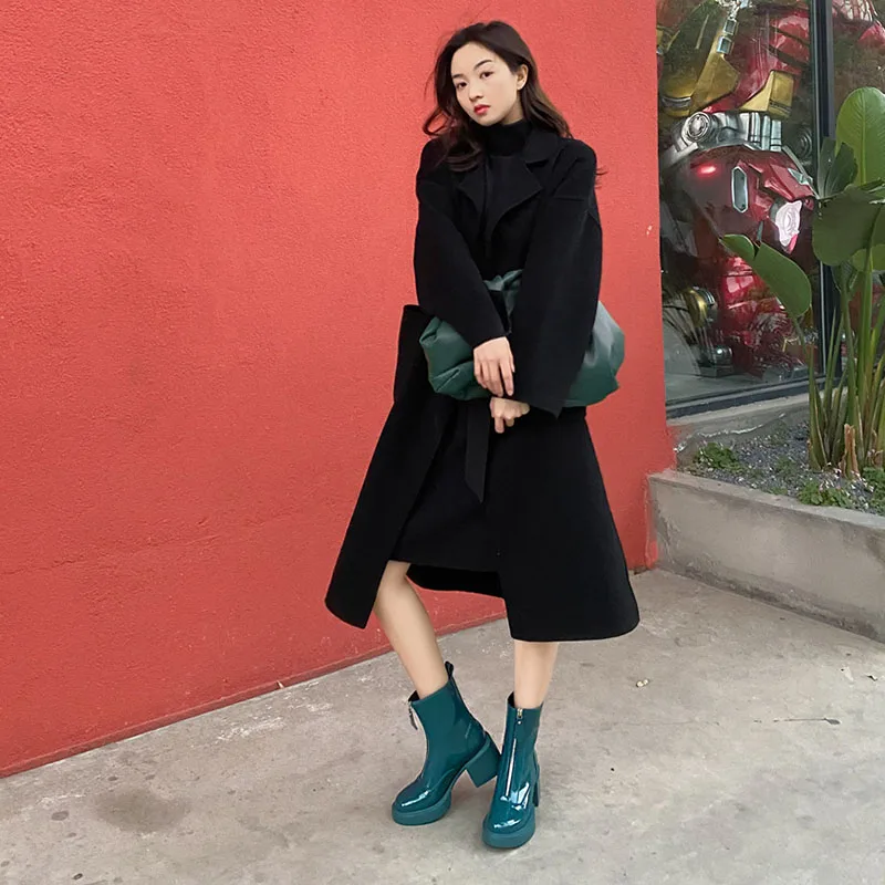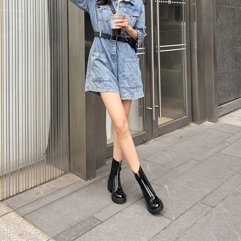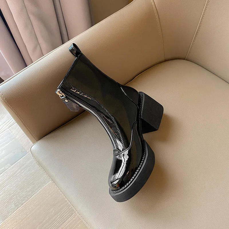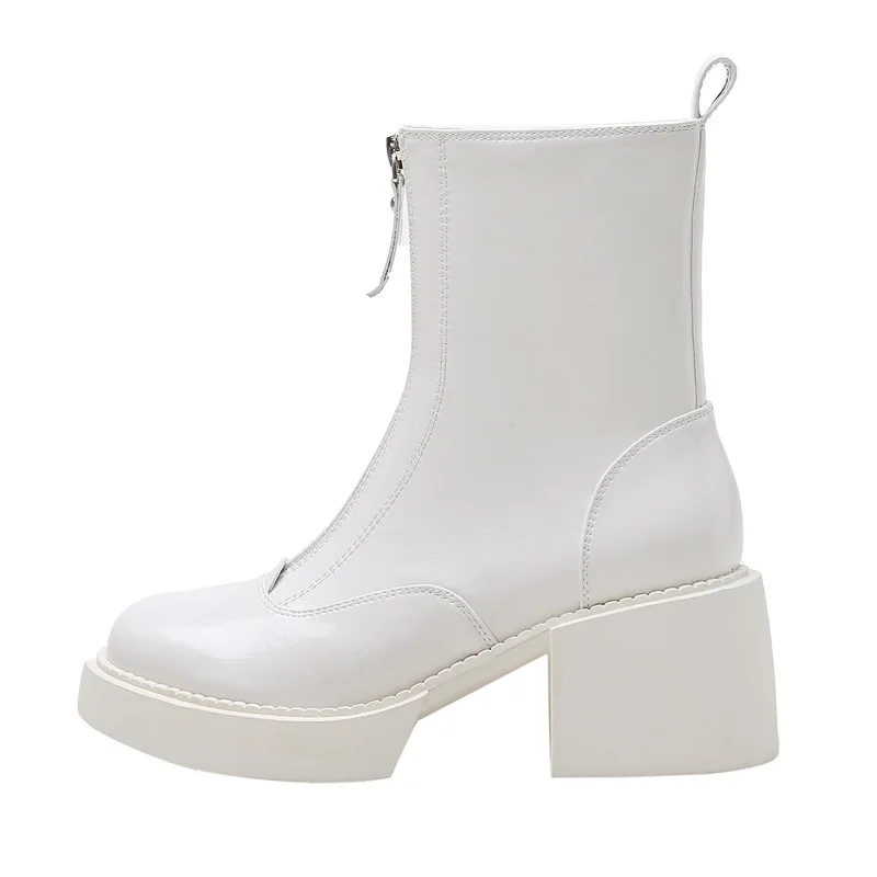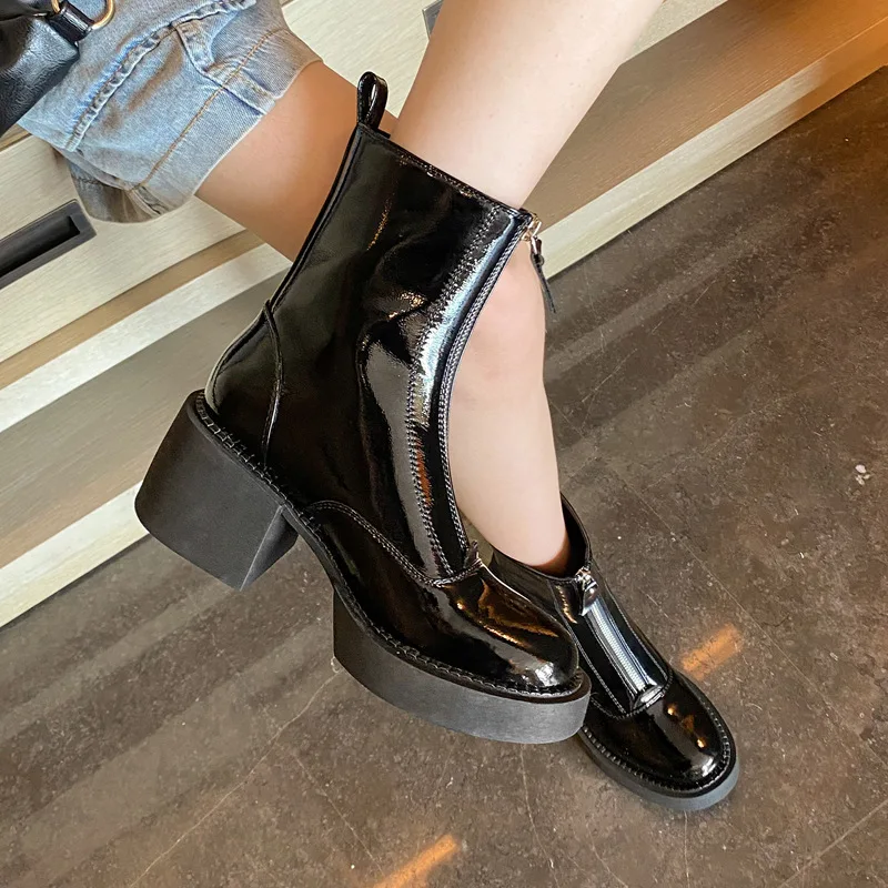 Женские ботинки из лакированной кожи, Новинка весна-осень 2021, Белые Водонепроницаемые короткие ботинки на платформе и молнии спереди, женские ботинки Sh с круглым носком