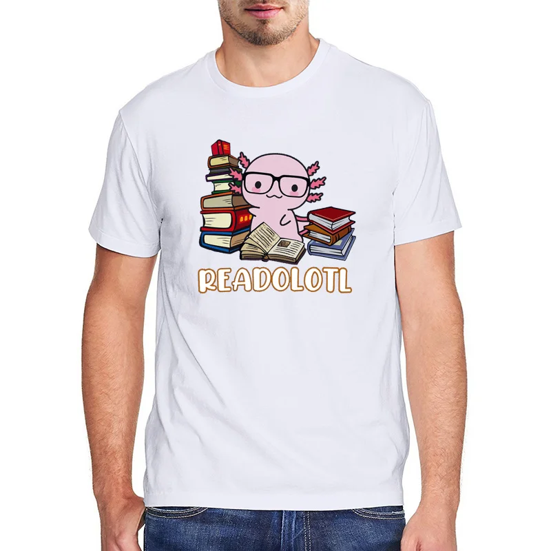 Забавная Мужская футболка Axolotl, Милая футболка для чтения Axolotl, Мужская новинка, футболка большого размера, Повседневная футболка, новый дизайн, топы с короткими рукавами для женщин
