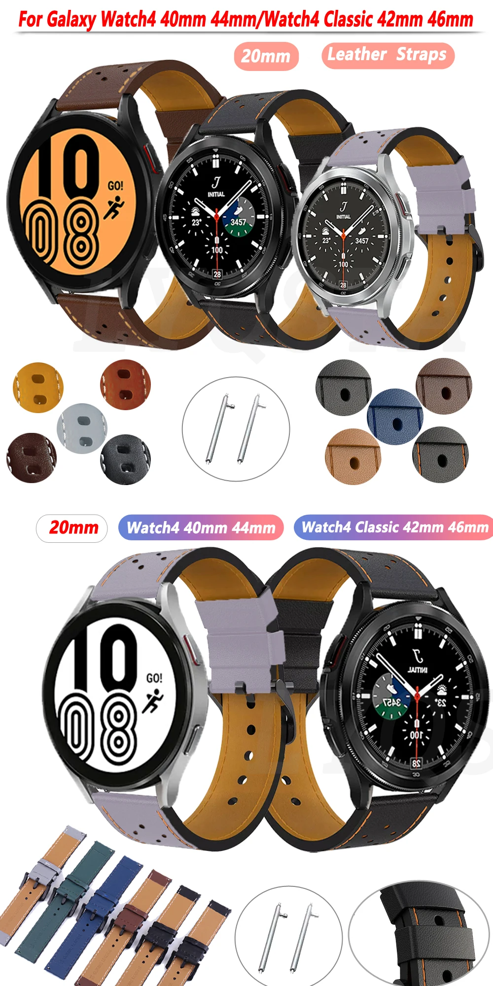 Ремешок кожаный 20 мм для Samsung Galaxy Watch 4Classic 44 мм 46 мм Active 2, браслет для Huawei GT2Pro Galaxy 3 41 мм42 мм