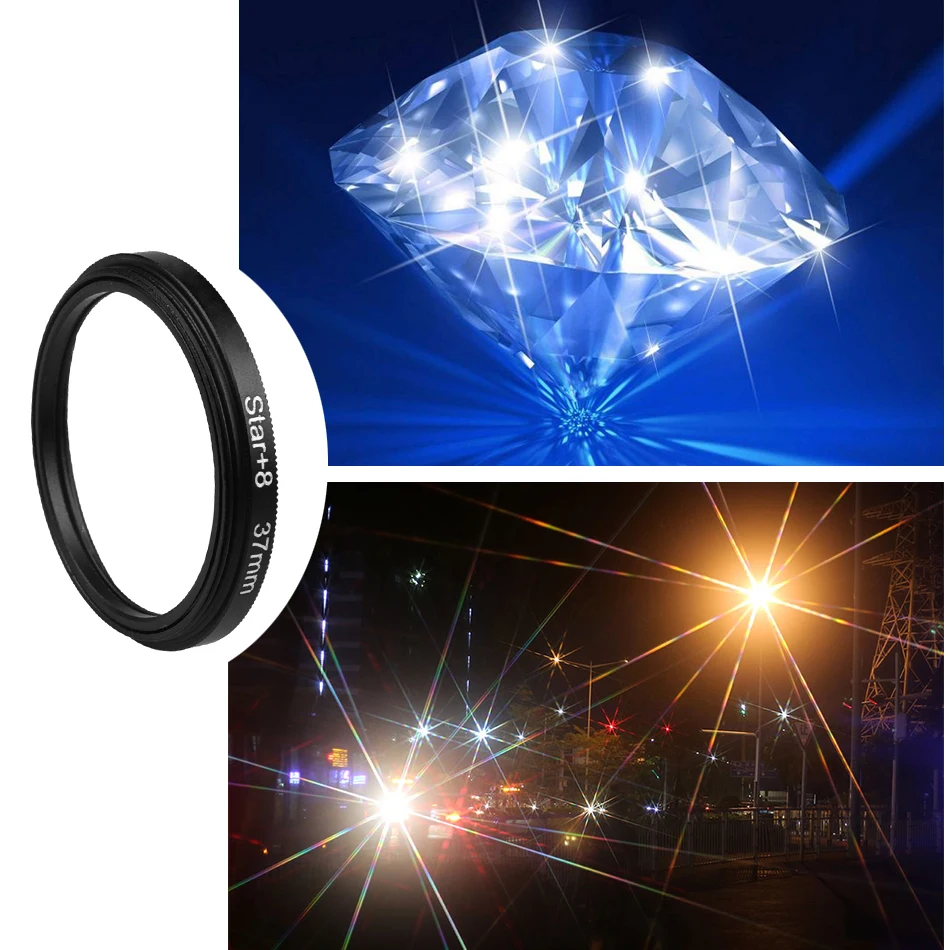 Звездный фильтр может использоваться для фотографирования уличных ламп снаружи, автомобильный светильник s, ночной вид на город, вода под солнцем, звездный светильник под деревом и так далее, точечный светильник.