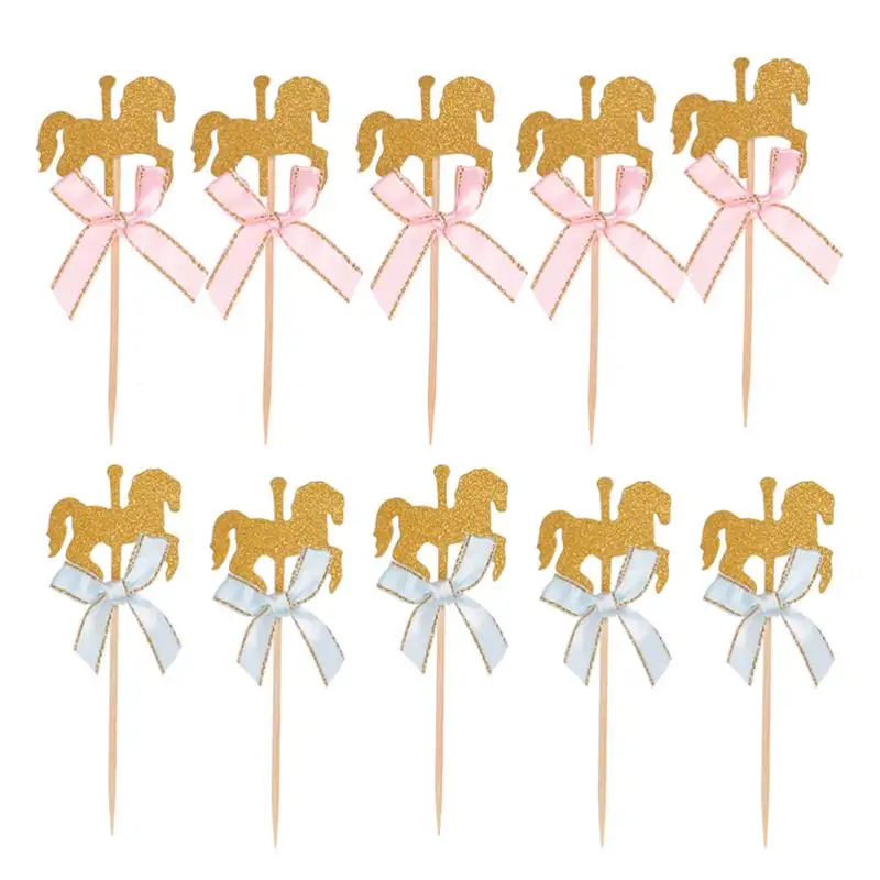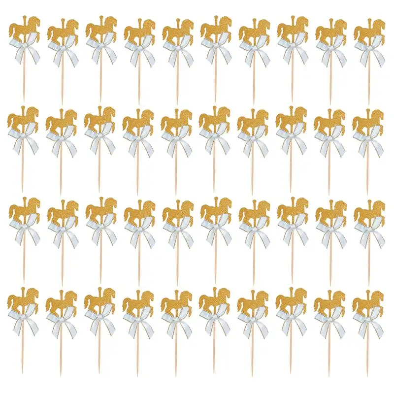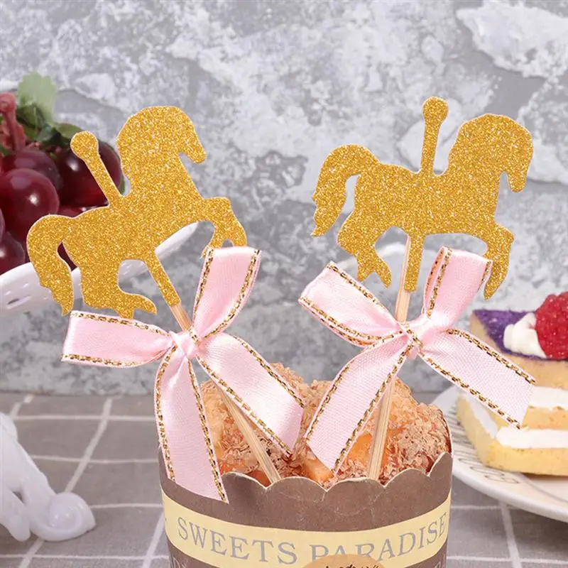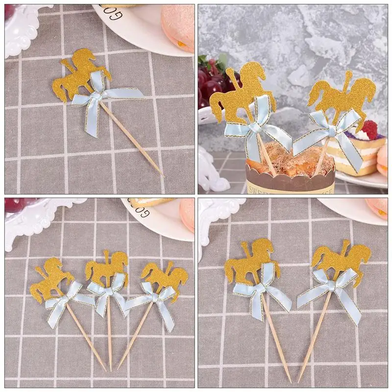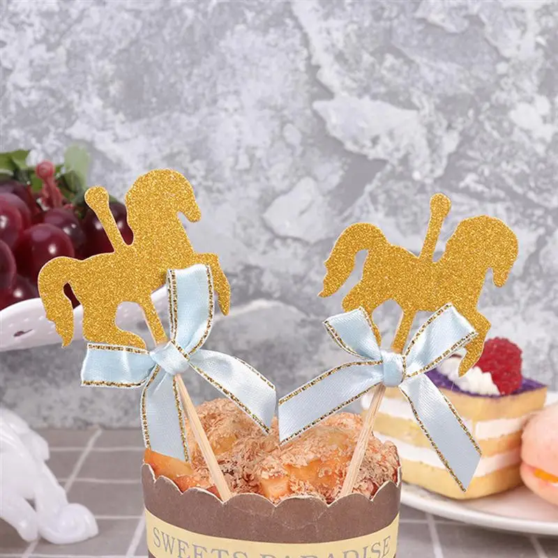 40 шт. креативные топперы для кексов в Форме Лошади Карусель тематический торт с лошадью десертный стол Декор карусель для торта быстрая установка