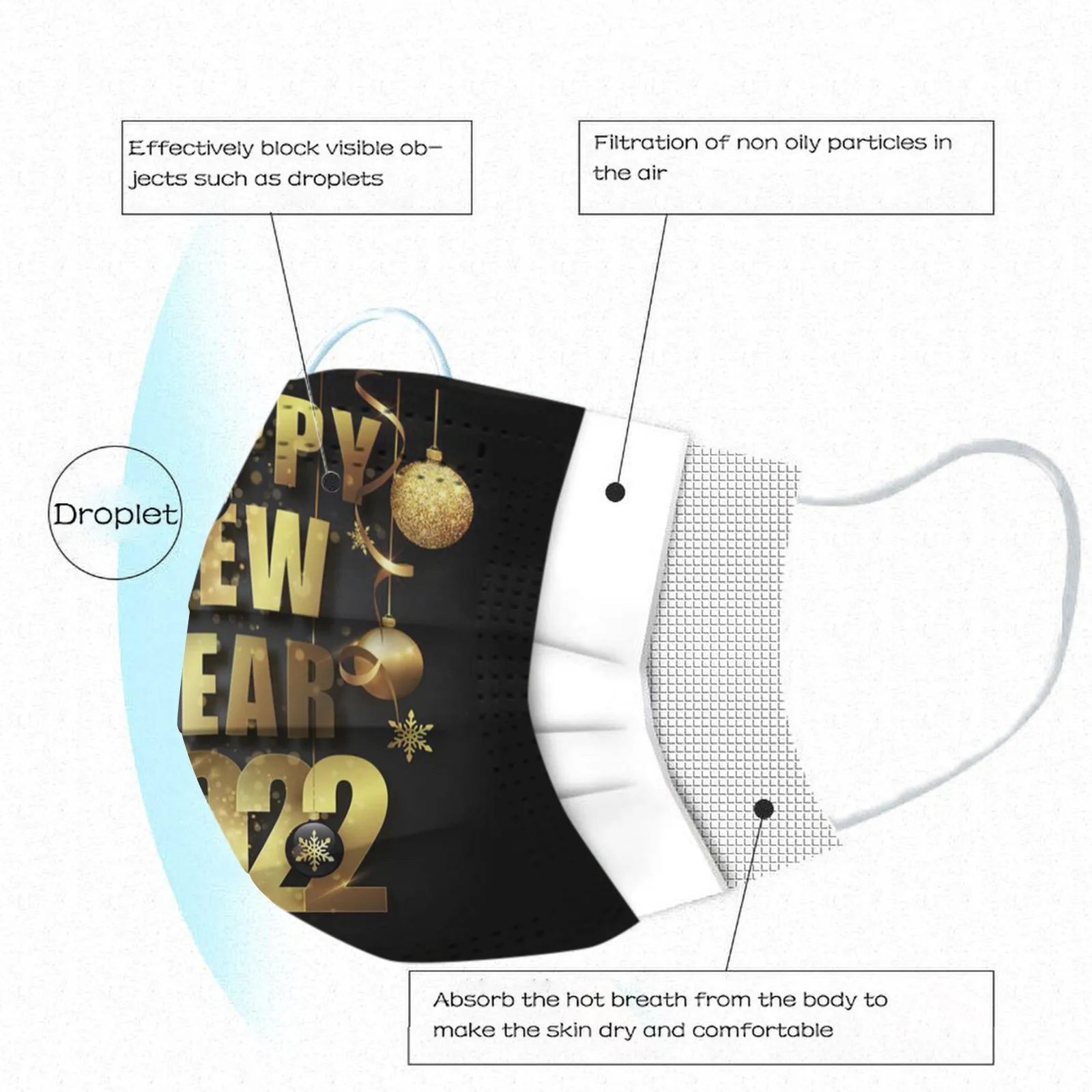 Быстрая доставка, 50 шт., 2022, одноразовая Маска с Новым годом, Для взрослых, Для Хэллоуина, косплея, кавайная Маска Для Лица, Маска