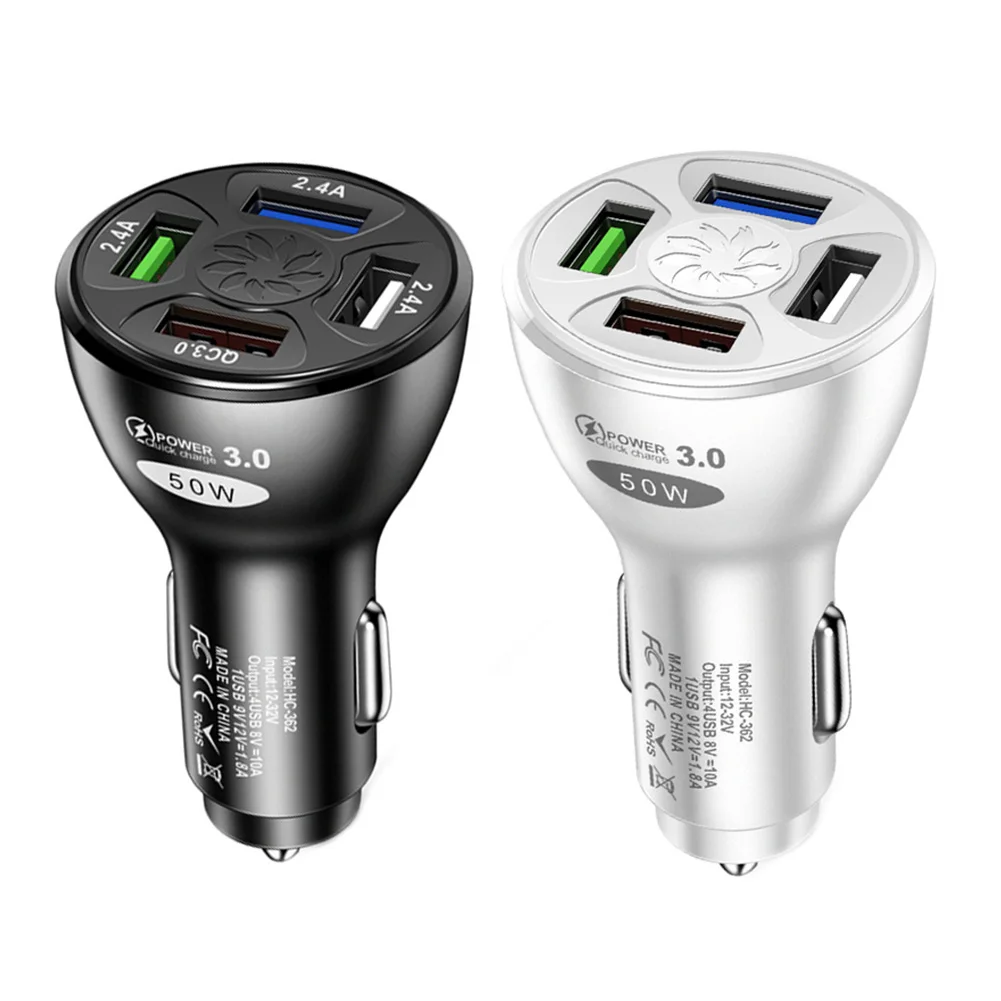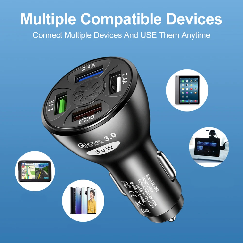Автомобильное зарядное устройство 12-32 в с 4 портами USB QC3.0, автомобильное зарядное устройство 50 Вт, 7A, автомобильный адаптер для быстрой зарядки, прикуриватель, аксессуары для телефона