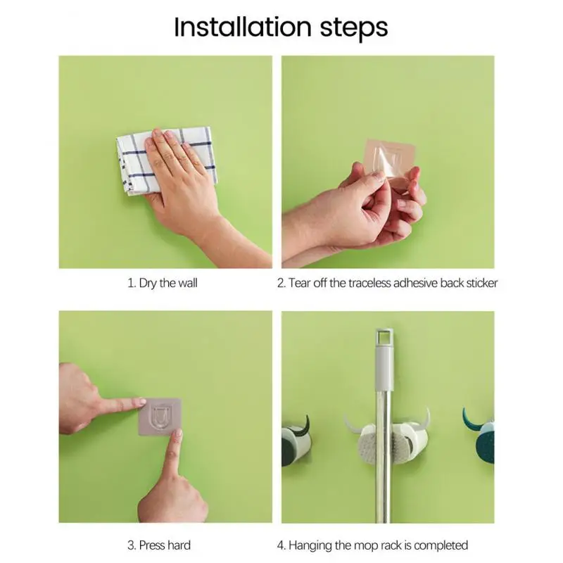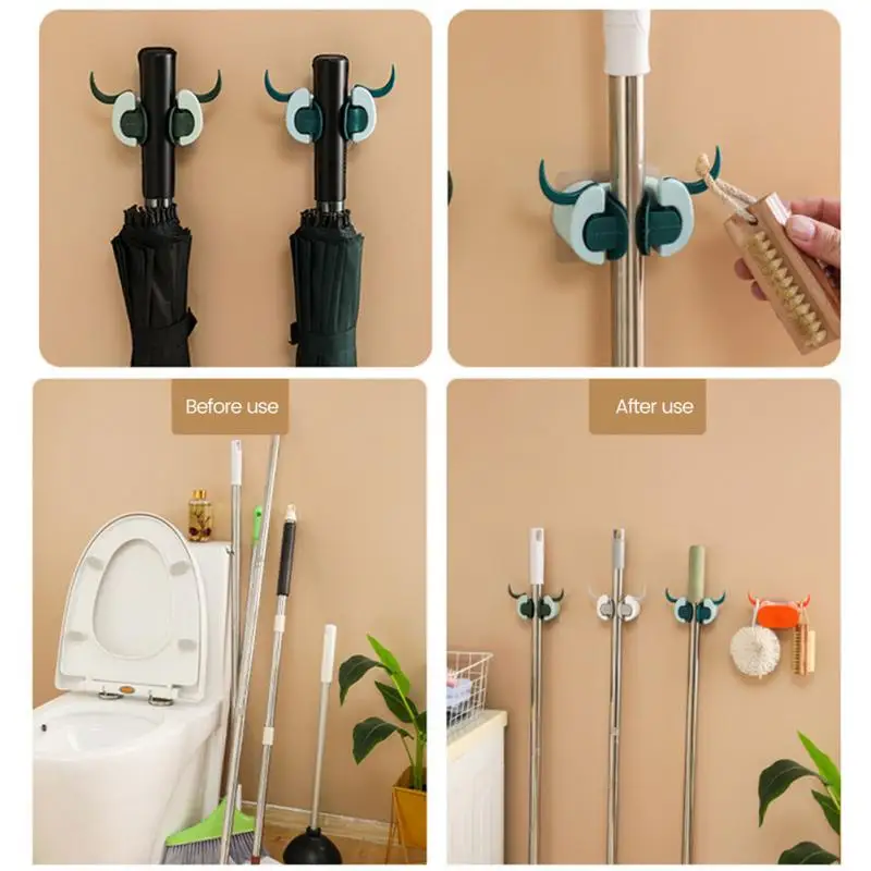 Зажим для швабры, настенный держатель для швабры, самоклеящиеся многофункциональные крючки, домашняя стойка для хранения, держатель для швабры, крючки для ванной комнаты