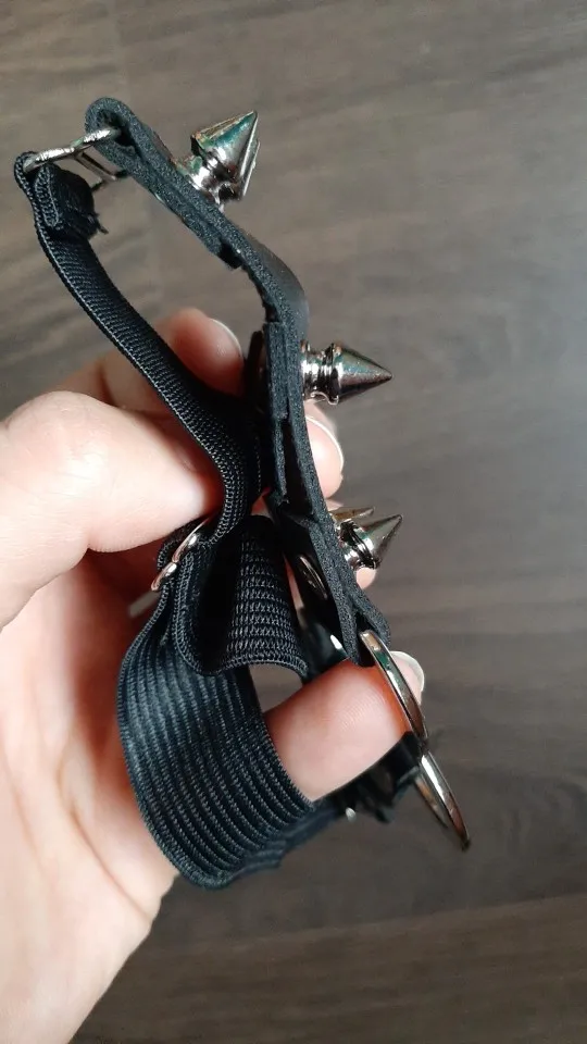 Выглядит так же, как на картинке, очень хорошо сделано, гибкий, подходит практически к любому размеру, мне очень нравится, шипы тоже хорошие, блестящий металл. Он действительно держит ваши носки, они довольно прочные. Сначала он немного пахнет, но он точно исчезнет после нескольких прогулок. Товар прибыл очень быстро, через 2-3 недели.