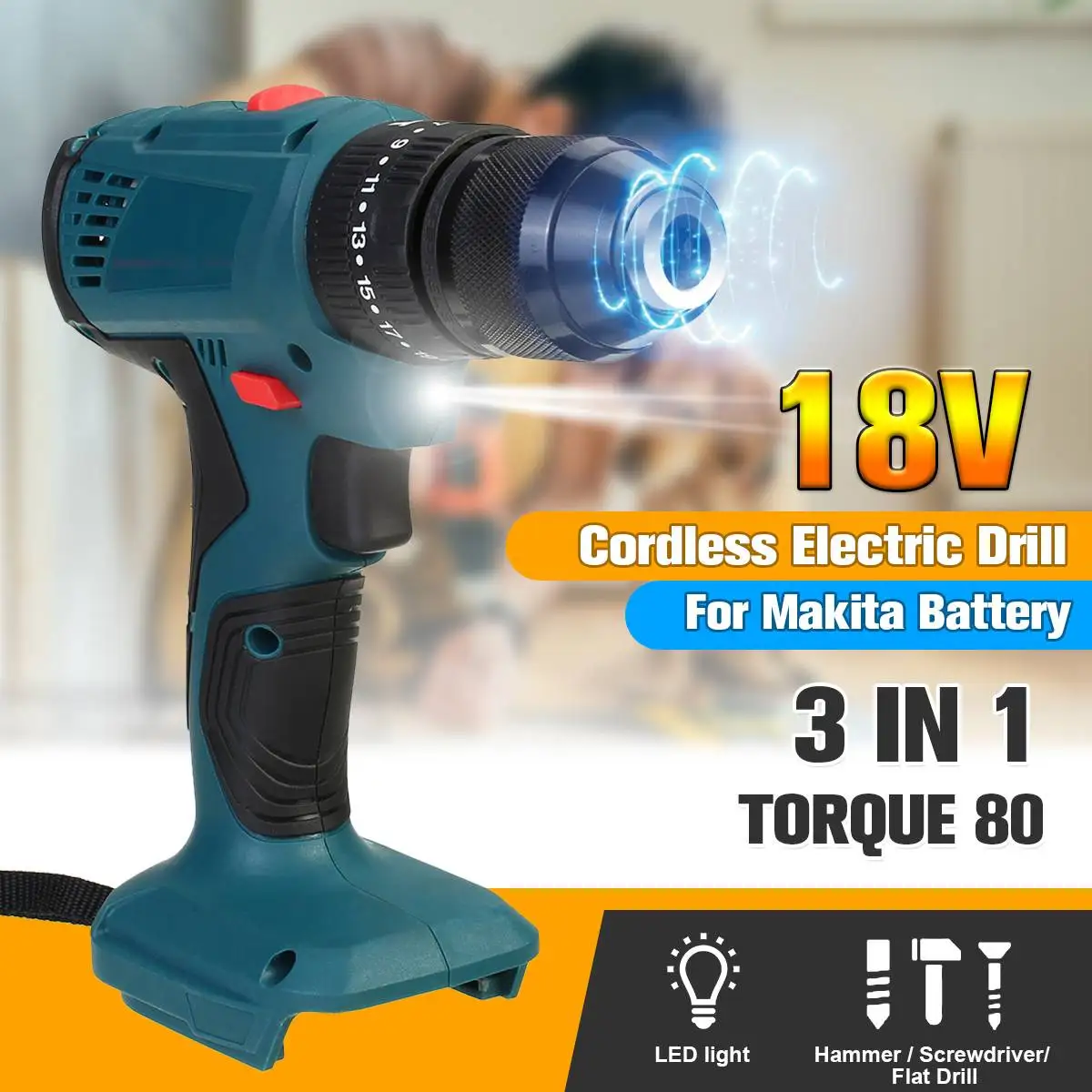18 в 10 мм 3 в 1 матовая ударная электрическая дрель, отвертка для аккумулятора Makita, 20 + 3 режима крутящего момента, беспроводная дрель 38 дюйма
