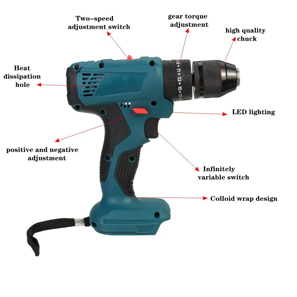 18 в электрическая Ударная дрель 10 мм перезаряжаемая электрическая отвертка 3 в 1 для электроинструментов Makita