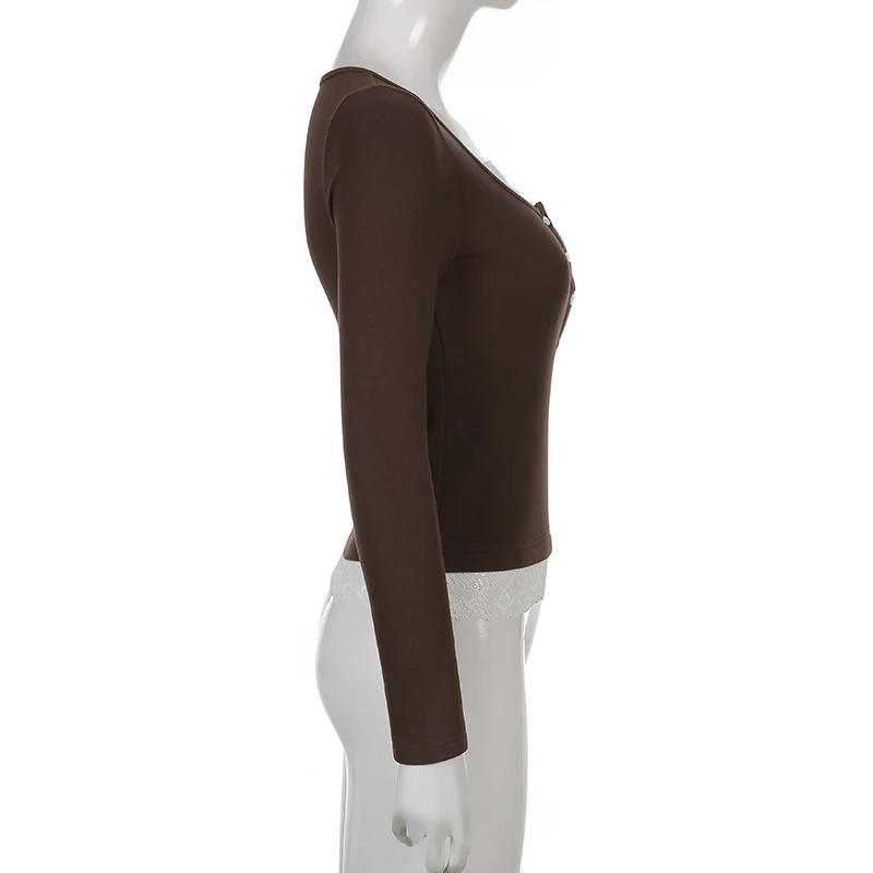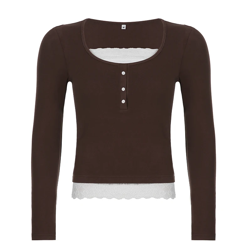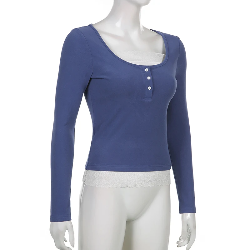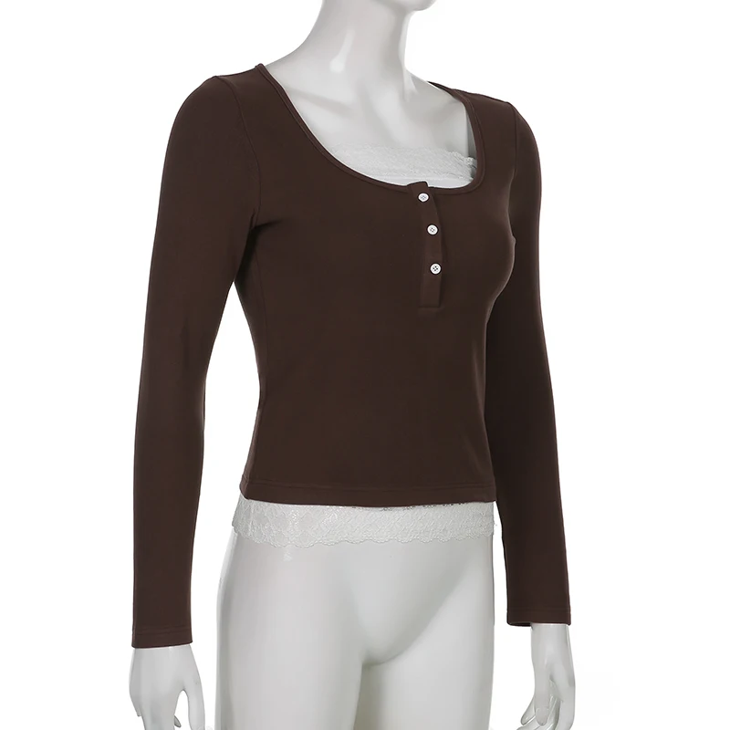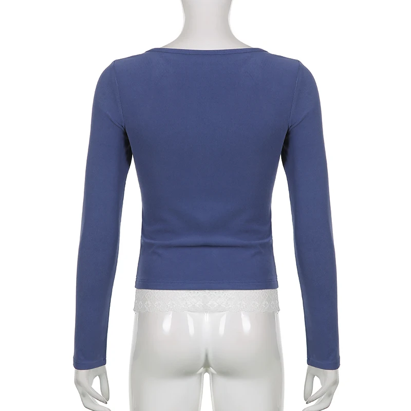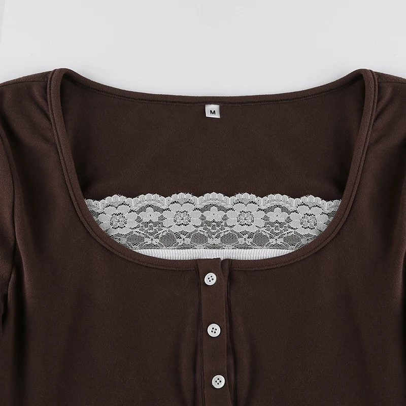 Кружевные лоскутные Футболки Y2K из хлопка, винтажная Модная приталенная одежда на пуговицах, корейские повседневные осенние гранж-топы в стиле ретро, cuteandpsy
