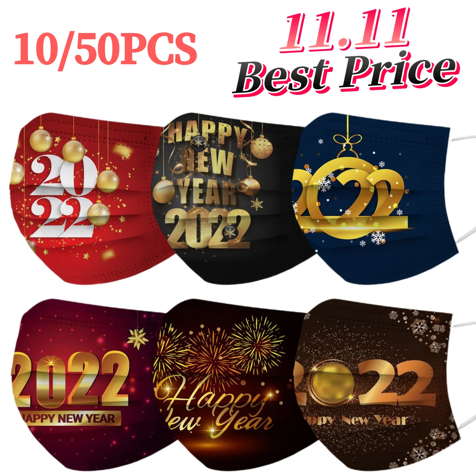 Быстрая доставка, 50 шт., 2022, одноразовая Маска с Новым годом, Дл...