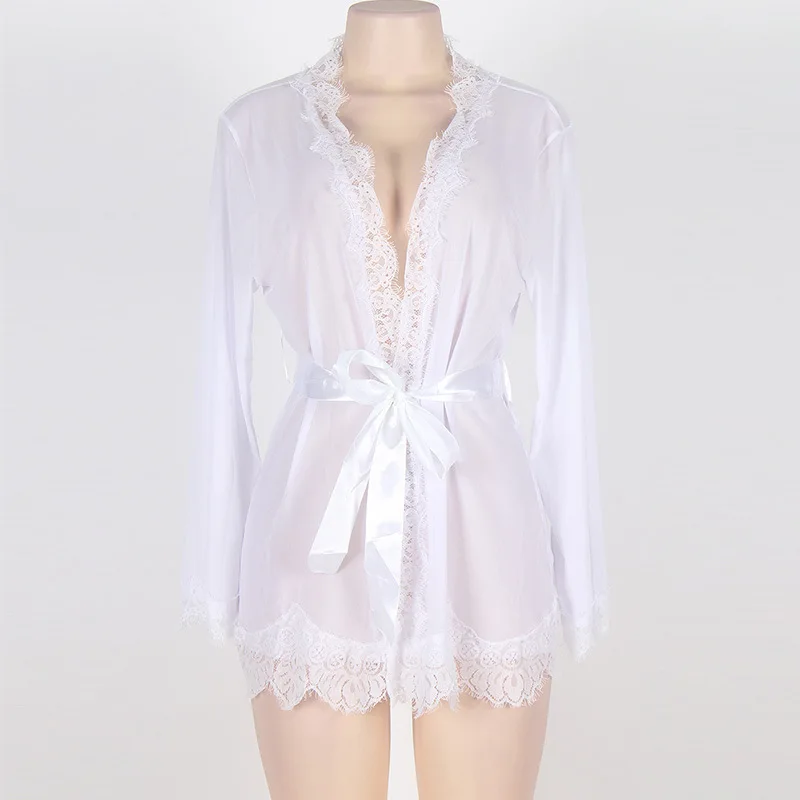Кружевное белье халат с длинными прозрачными размера плюс сексуальн...