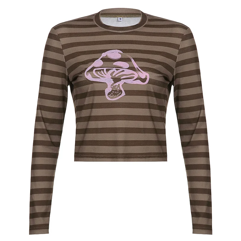 ALLNeon Goblincore эстетические полосатые футболки с рисунком грибо...