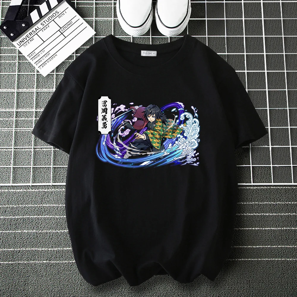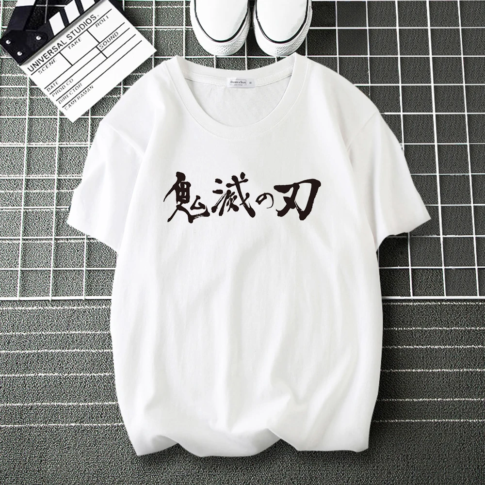 Футболка мужская с принтом из японского аниме, повседневная смешная Свободная рубашка с изображением рассеянного демона, китайского иероглифа, в стиле Харадзюку