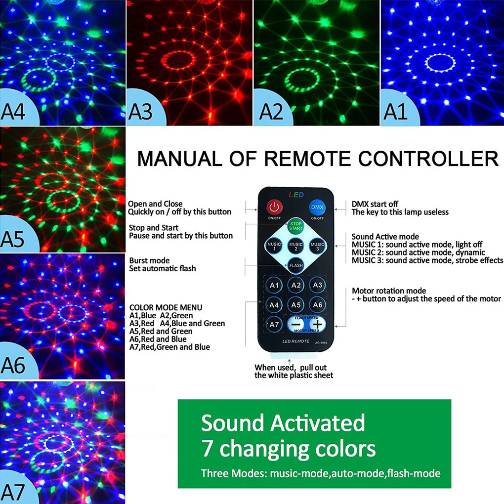 Многофункциональные дискотечные огни: 3 режима активации звука + 7 режимов освещения + вспышка + контроль скорости вращения + контроль скорости вспышки.7 режимов освещения: красный, зеленый, синий, красный/зеленый, красный/синий, зеленый/синий и RGB. Просто выберите тот, который вам нравится.Звуковая активированная Дискотека: Мощный голосовой датчик. Идеально подходит для дня рождения, танцевальной вечеринки, диджея, бара, караоке, Рождества, свадьбы, шоу, клуба, паба, Рождества, Хэллоуина и т. Д.Дистанционное управление партиями: поставляется с пультом дистанционного управления, вы можете использовать его для включения/выключения света, изменения звукового активации/режимов освещения и управления скоростью вращения/вспышки. Все функции на пульте, очень прост в использовании.Простой в использовании вечерний свет: Просто подключите его и играйте. С гибким штативом сценический свет может быть размещен непосредственно на столе или столе, в автомобиле, или его можно зафиксировать на стене и крыше.
