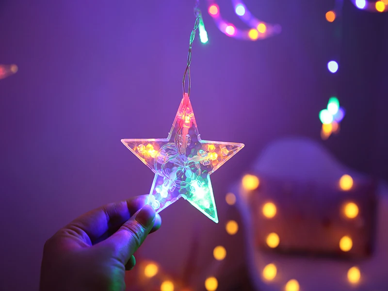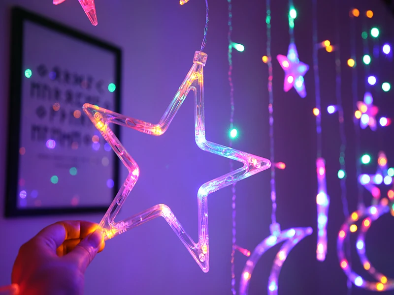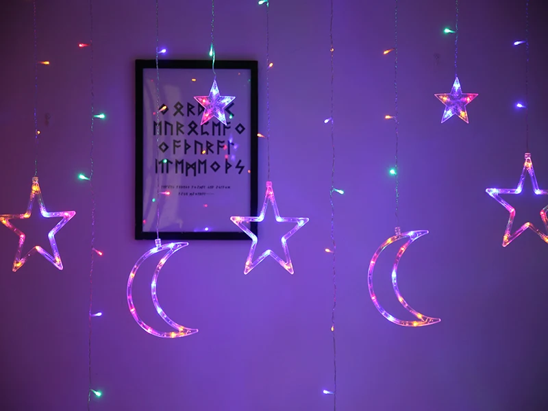 СВЕТОДИОДНАЯ Гирлянда в виде рождественского оленя s, Сказочная гирлянсветильник-занавеска, луна, звезды, 220 В, 110 В для дома, украшение на Новый год и свадьбу