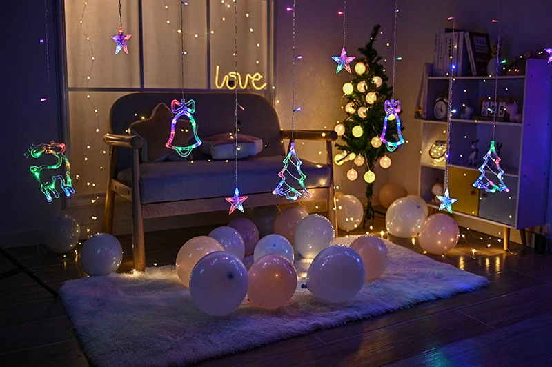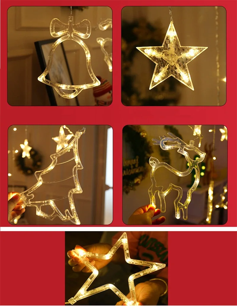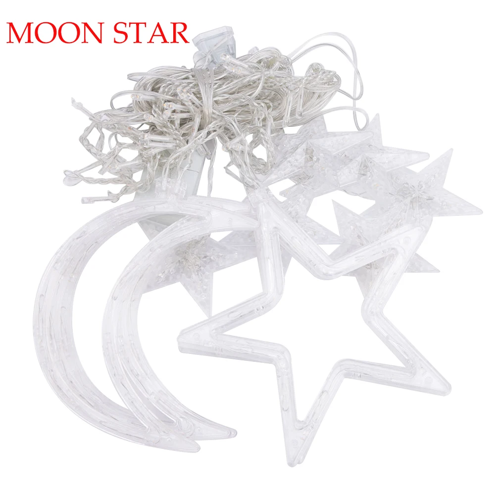 Светодиодный светильник с рождественским оленем, гирлянда s, сказочный занавес, светильник с Луной и звездами, 220 В, 110 В, для дома, новогоднее свадебное украшение