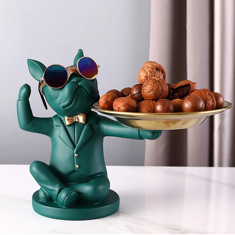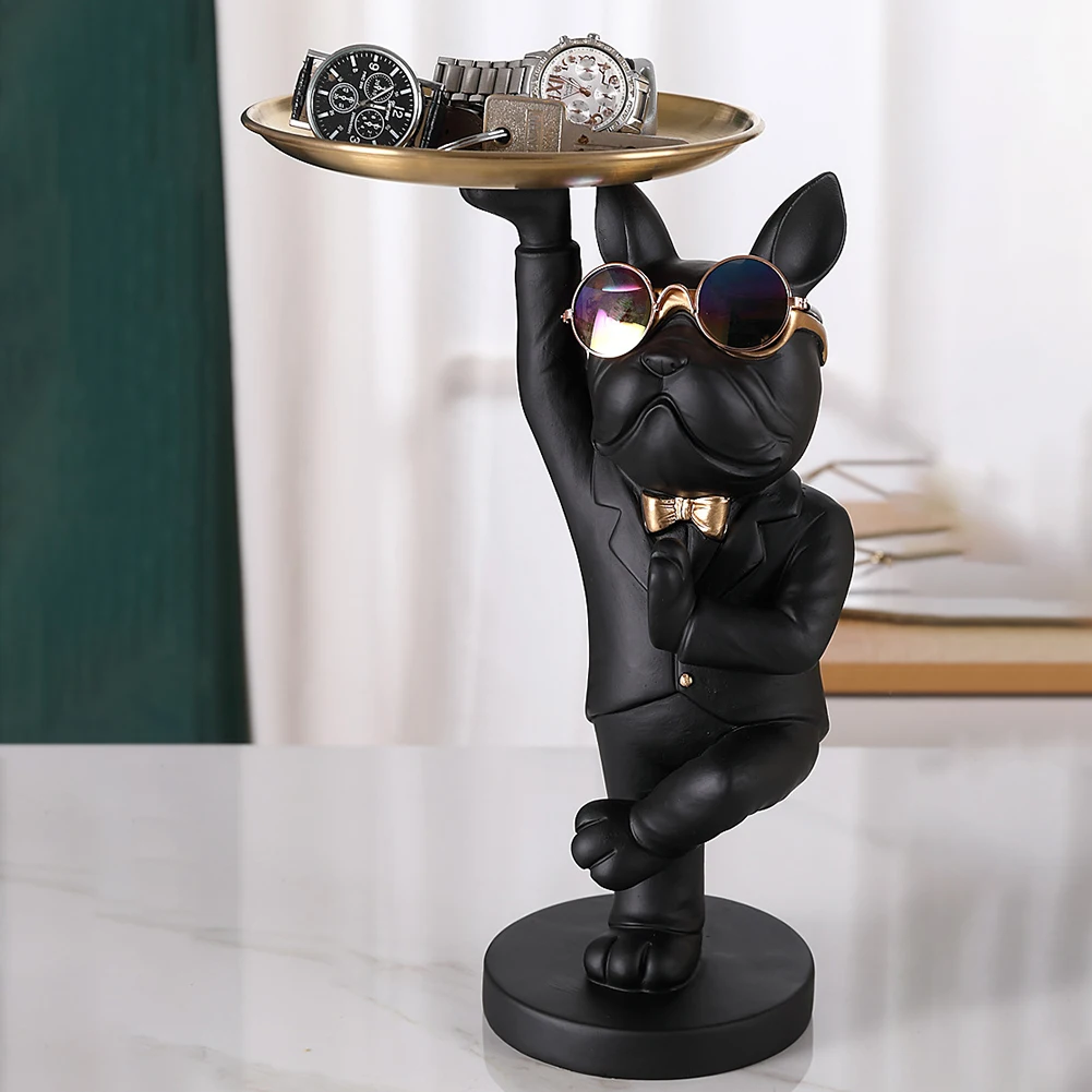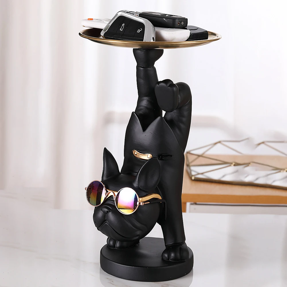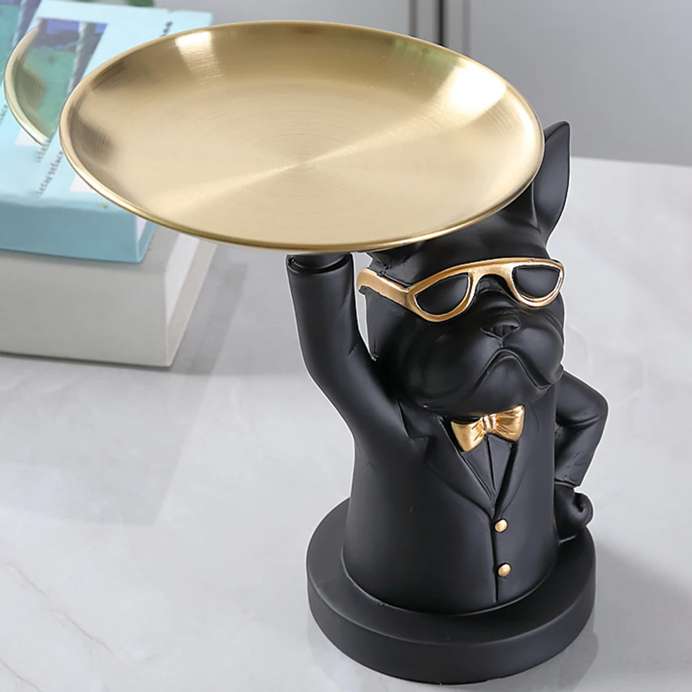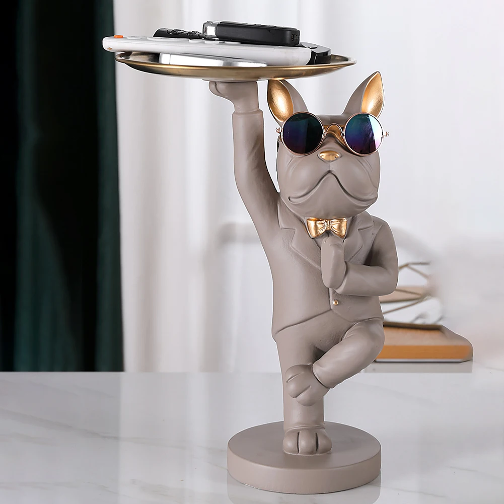 Скульптура французского бульдога, Скандинавская Роскошная фигурка, украшение для дома, поднос для закусок и конфет, настольное украшение, поднос для хранения