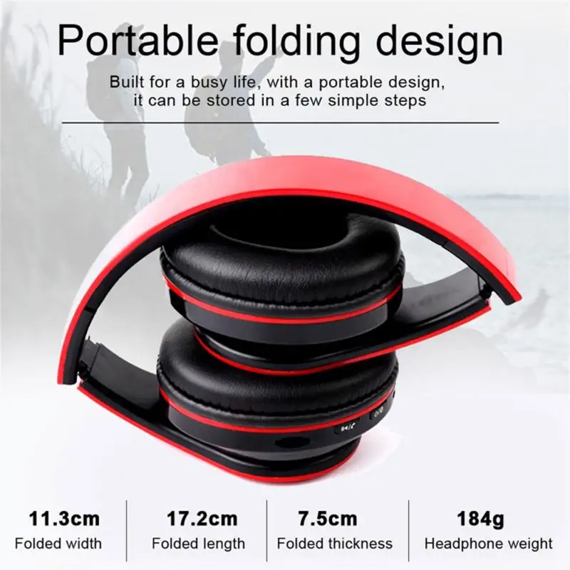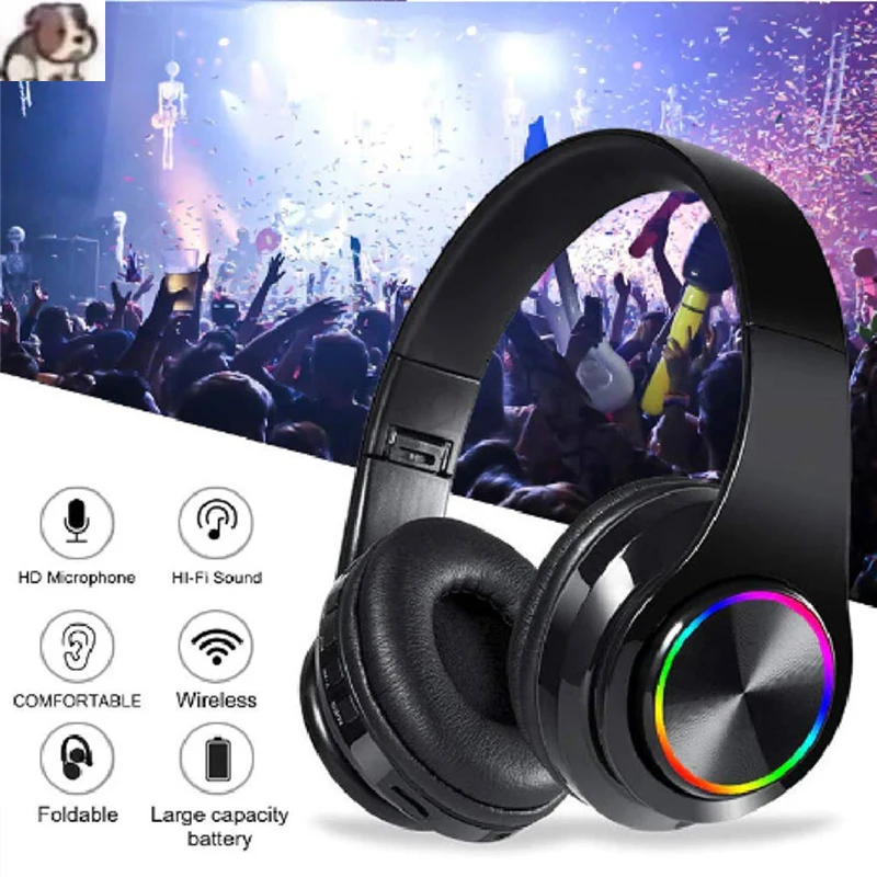 Hi-Fi стереонаушники, Bluetooth-наушники, музыкальная гарнитура с поддержкой SD-карты и микрофоном для XiaoMi, iphone, Samsung со светодиодом