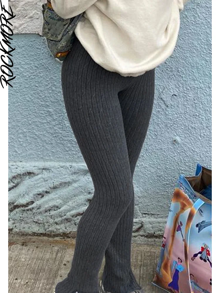 Женские трикотажные брюки-карандаш Rockmore, серые повседневные брюки с высокой талией и разрезом, Y2K, спортивные Леггинсы для бега, байкерские брюки