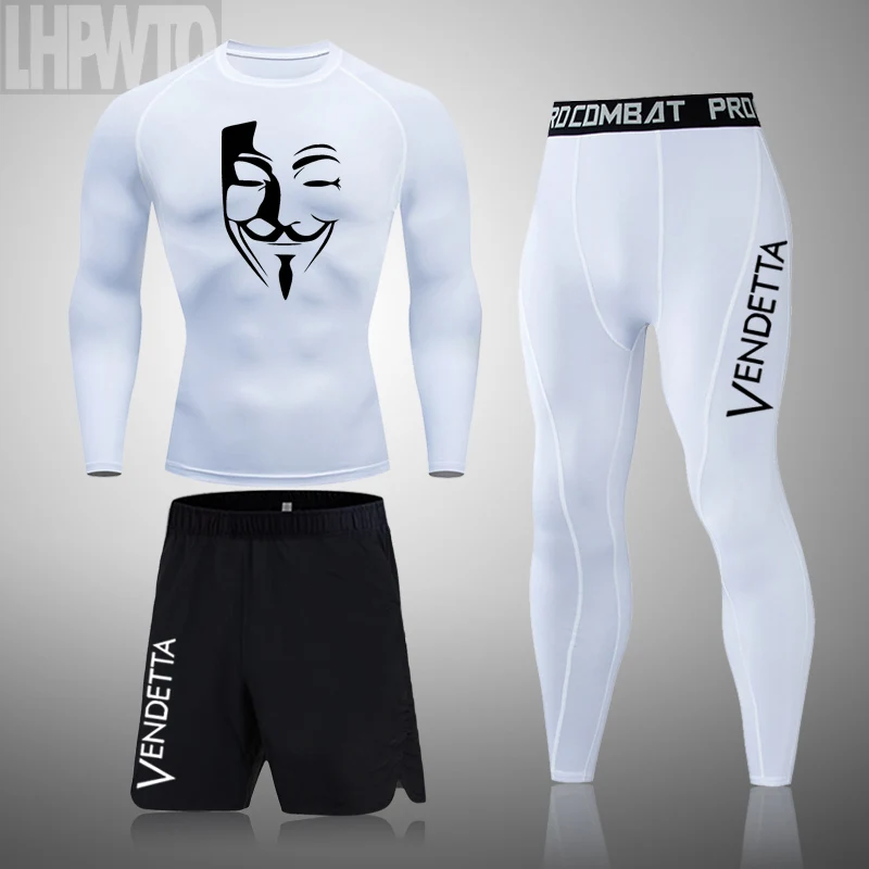 Костюм мужской спортивный компрессионный из футболки и брюк, 2-3 пр...