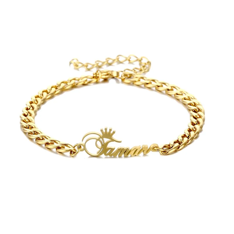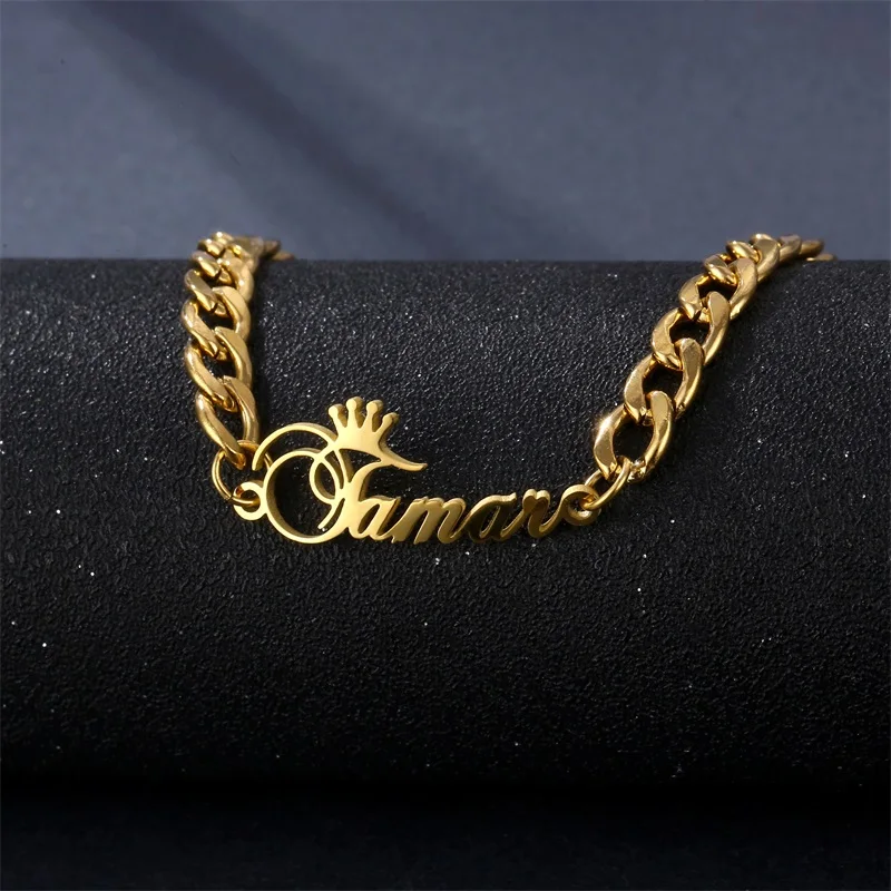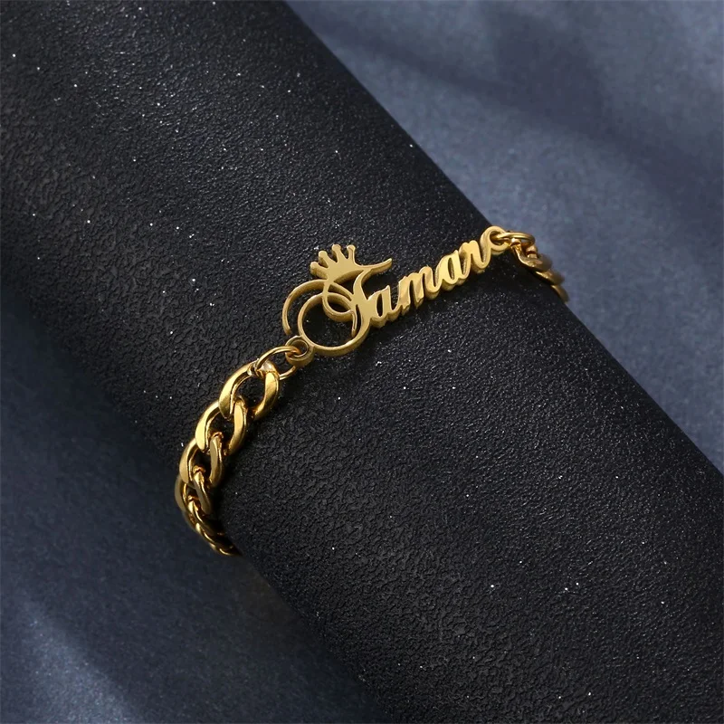 Индивидуальные именные браслеты из нержавеющей стали для женщин и мужчин, индивидуальная Золотая Корона 5 мм, кубинский браслет-цепочка, ювелирные изделия