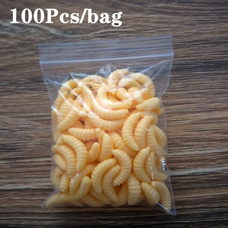 100 шт.пакет мягкая червяк личинка приманки для рыбной ловли наживки в форме хлеба жука искусственная личинка черви личинка рыболовные приманки снасти Аксессуары