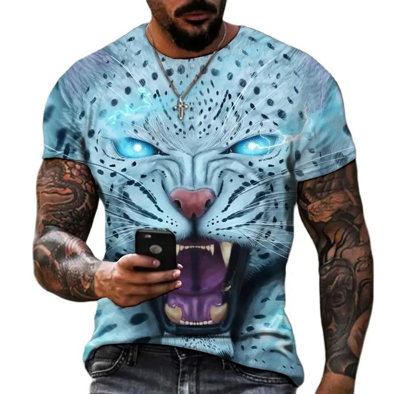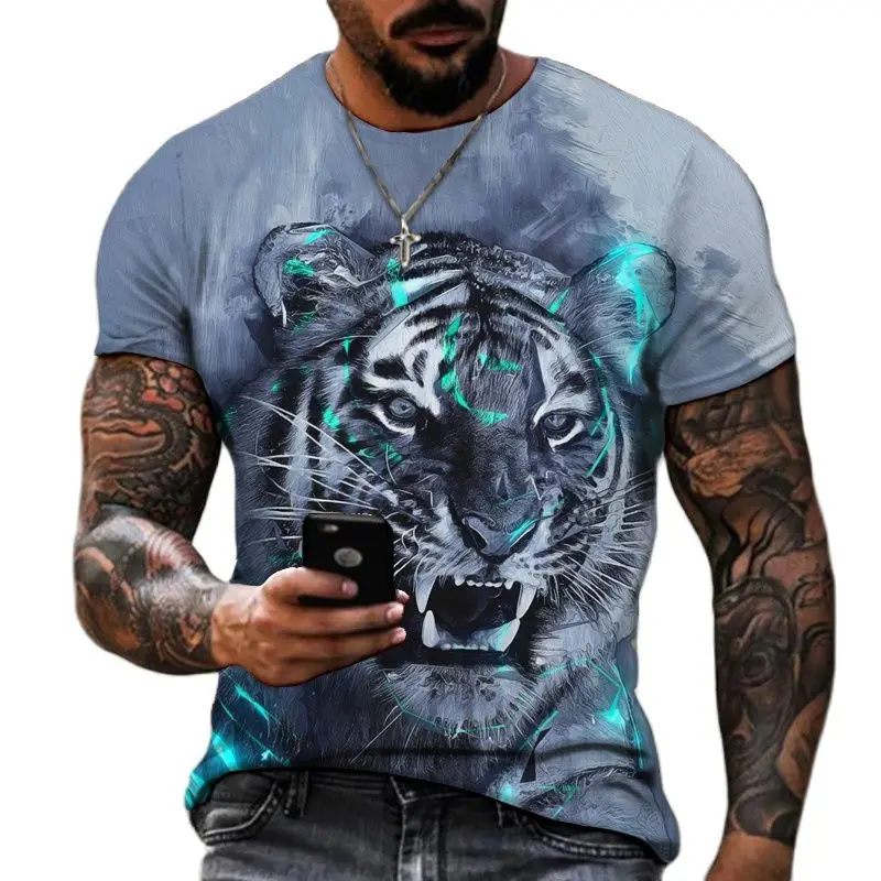 Новая мужская футболка с 3D-принтом тигра и животного, летняя мужская Свободная футболка в стиле панк, рабочая одежда с коротким рукавом и круглым вырезом