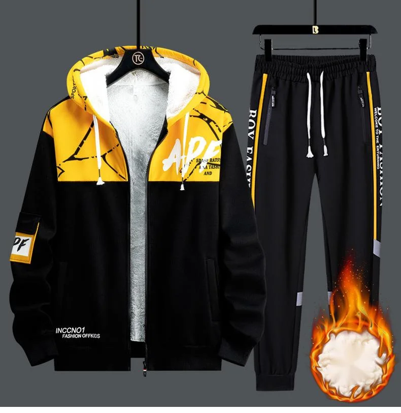 Новинка 2022, спортивный костюм для мужчин, зимний теплый свитшот на молнии, спортивные штаны, кардиган, Модные свитшоты из 2 предметов, спортивный костюм для студентов и мужей