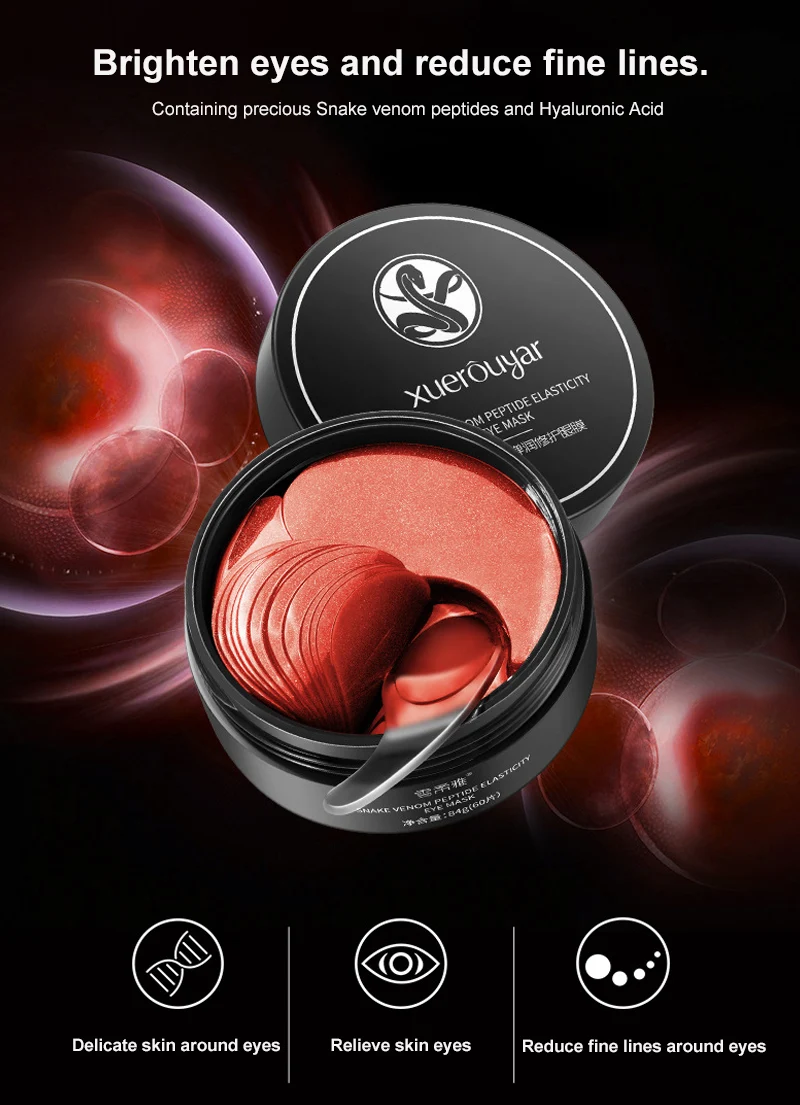 60 шт., маска для глаз со змеиным Веном, натуральный увлажняющий гель, антивозрастной коллаген, накладки для глаз, против морщин, против отечности, уход за кожей глаз