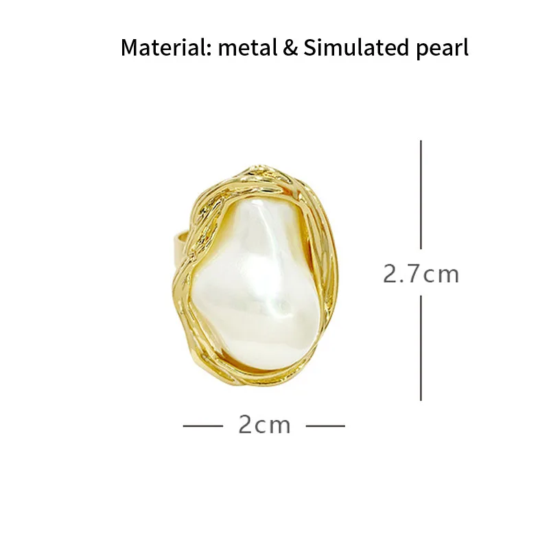 Женское Открытое кольцо с большим жемчугом, регулируемое кольцо неп...