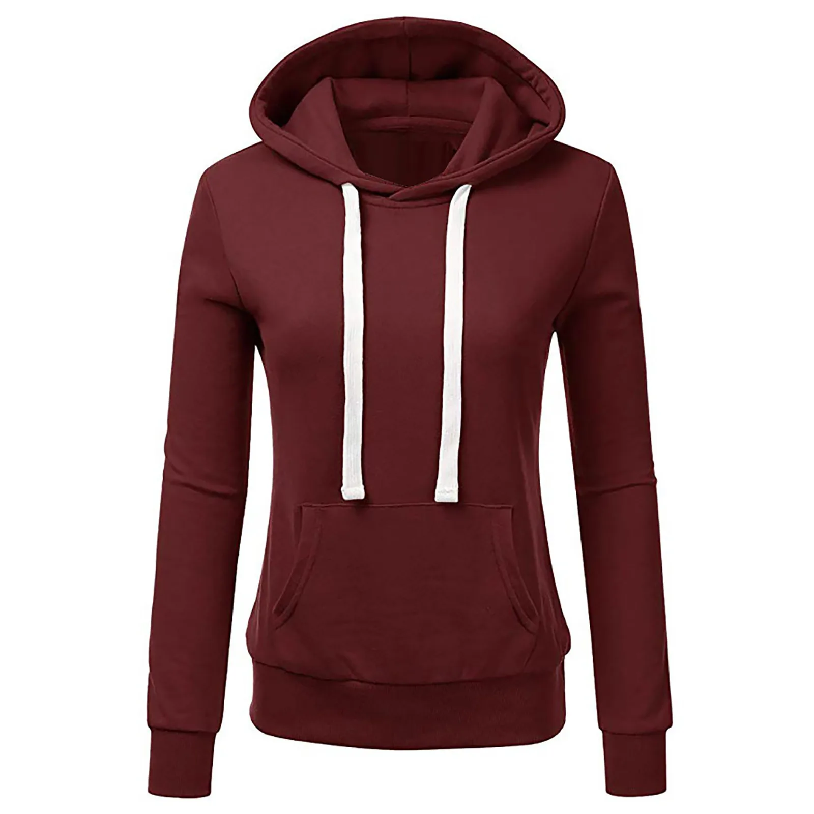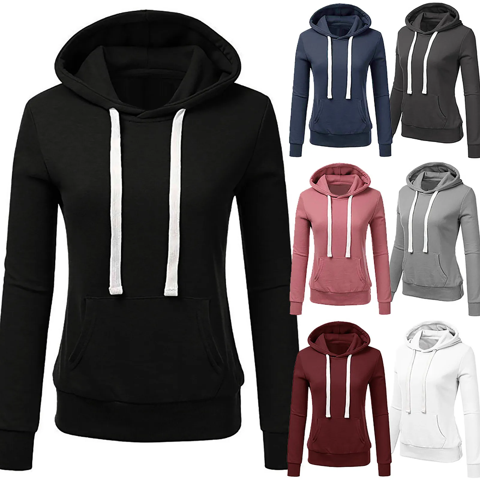 Женская однотонная толстовка с капюшоном и карманом с длинным рукавом, пуловер, топы, рубашка