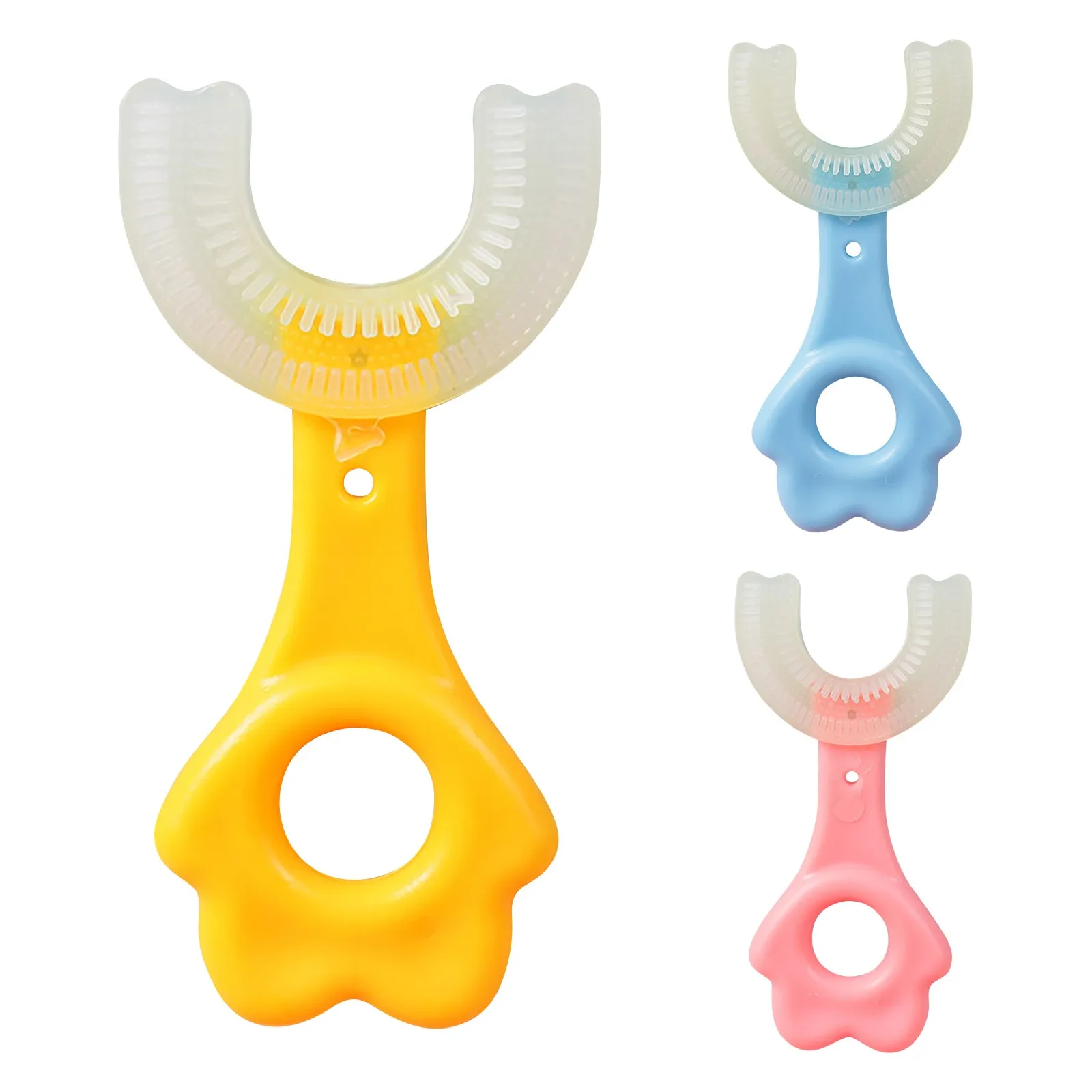Симпатичная U-образная детская зубная щетка, детская чистящая щетка, удобная и простая силиконовая детская зубная щетка для полости рта