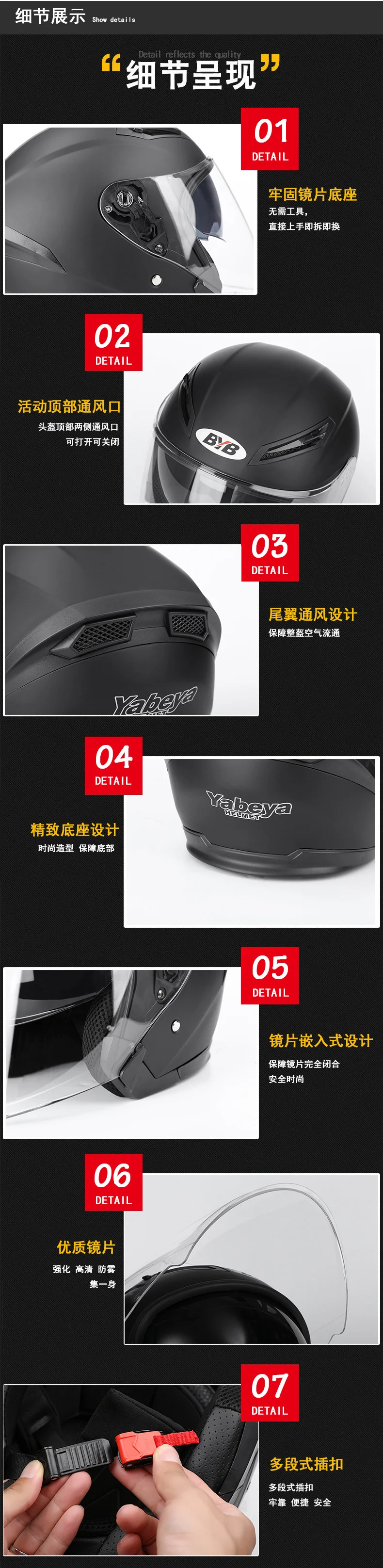 Мотоциклетный шлем BYB Abia 705 для взрослых и мужчин, защитный шле...