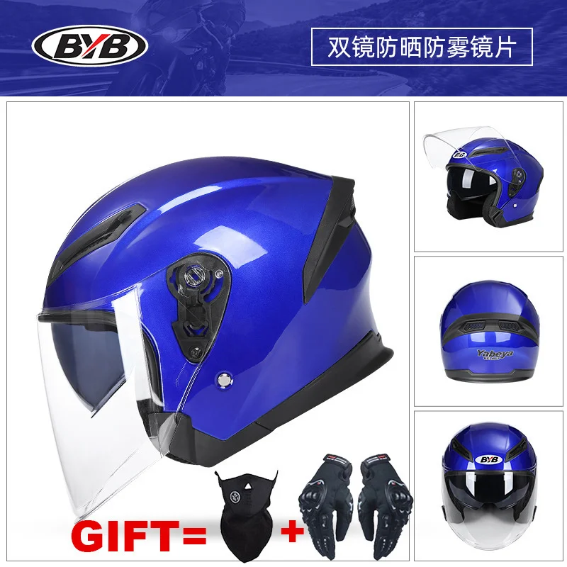Мотоциклетный шлем, полумассивный, с двойными стеклами, 2 подарка, 34