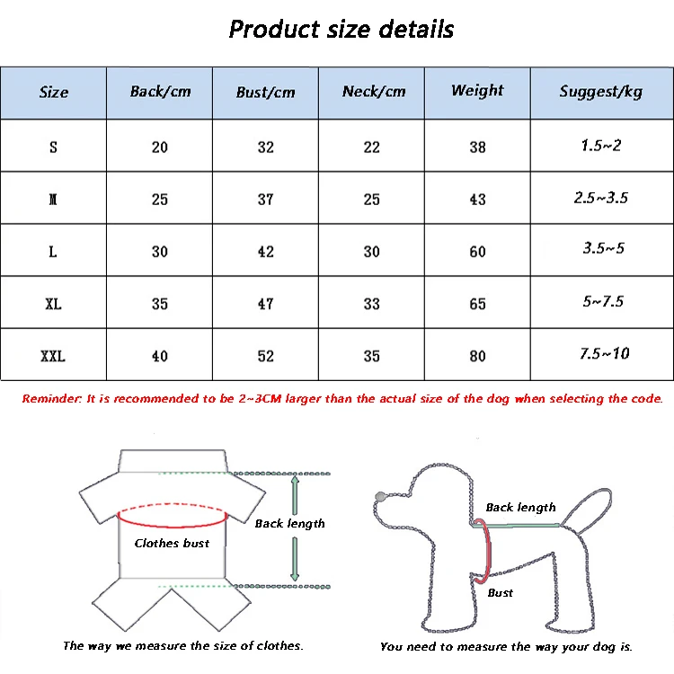 Примечание:-пожалуйста, обратитесь к измерению размера питомца. Из-за ручного измерения допускается небольшая погрешность в 1-3 см в пределах нормального диапазона.