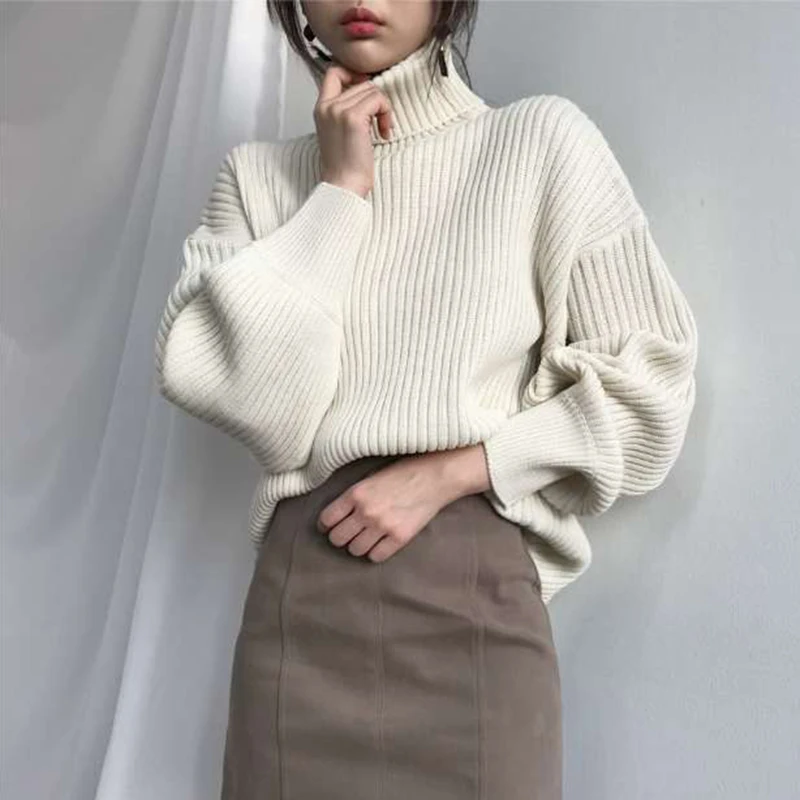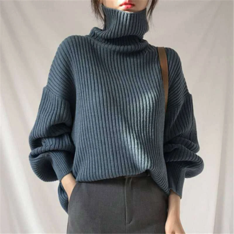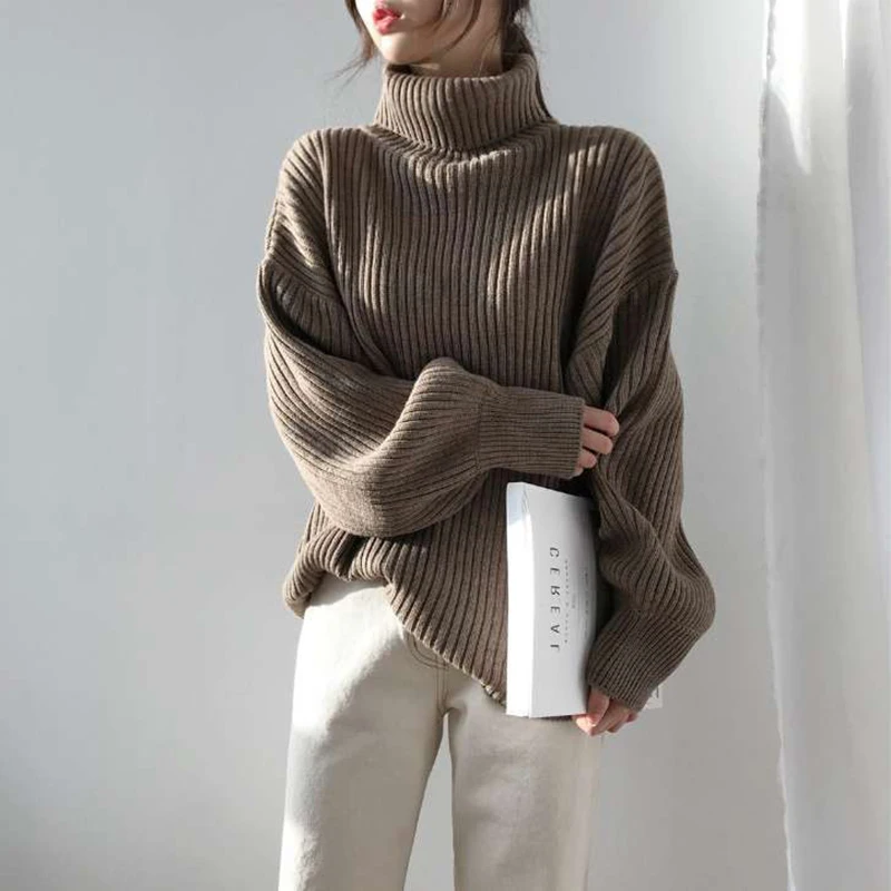 SHENGPALAE модный шикарный однотонный вязаный пуловер для женщин Весна 2022 Новинка водолазка свободный свитер с длинным рукавом женский прилив